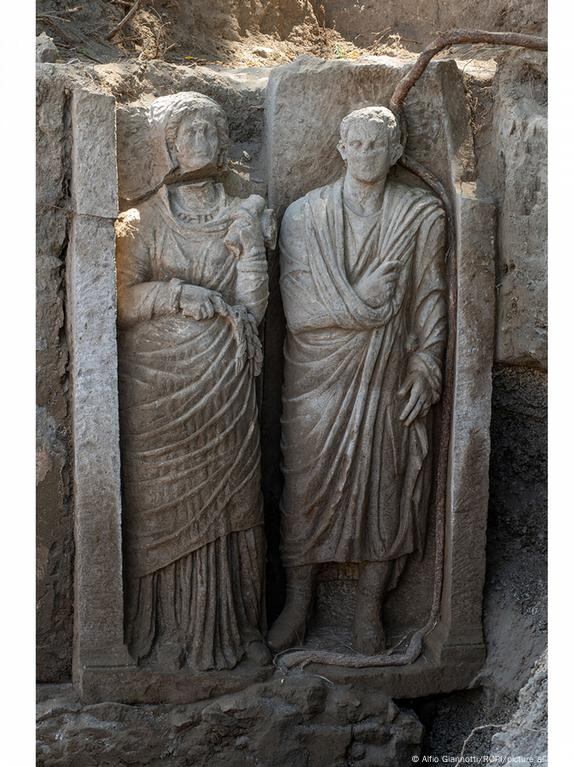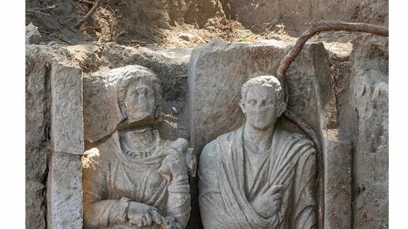 Según los arqueólogos, los accesorios tallados de la esposa "podrían identificarla como una sacerdotisa de Ceres", mientras que el marido, que mide 175 centímetros de altura, parecía ser un "ciudadano romano distinguido por vestir una toga".