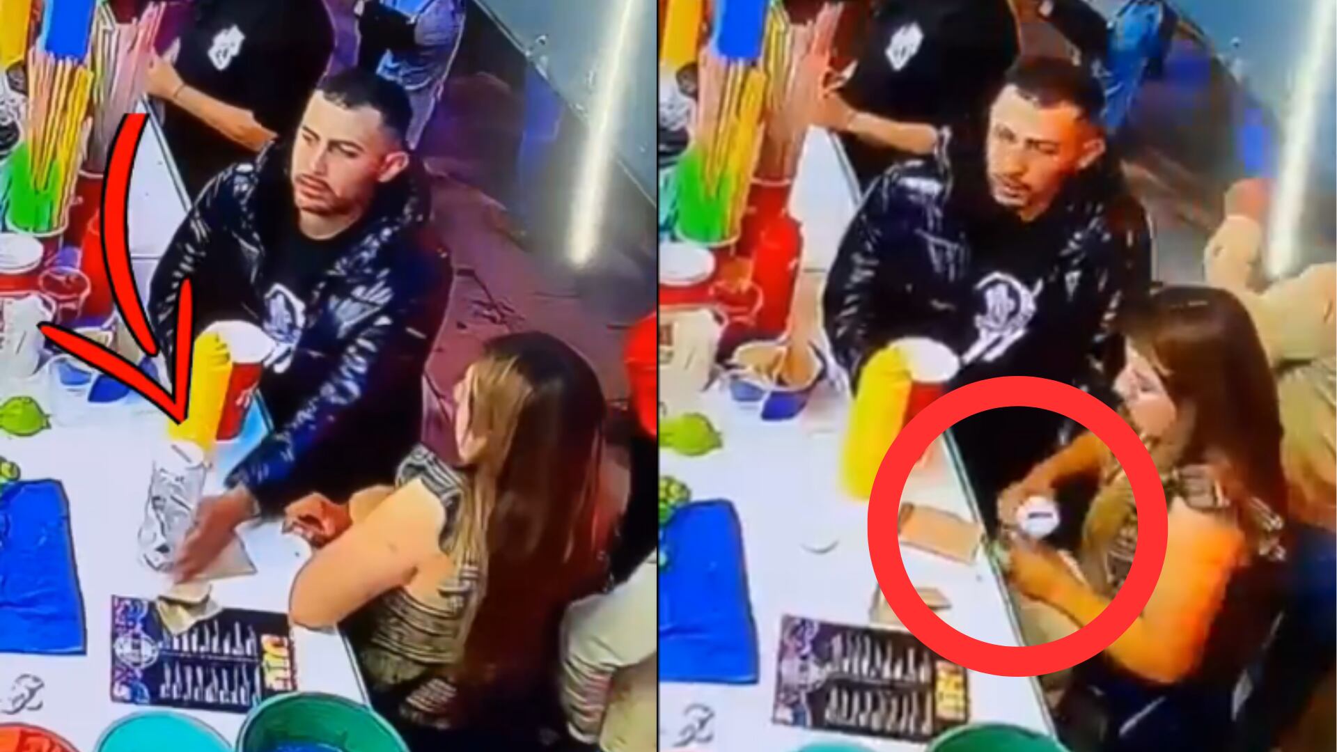 El video muestra a una pareja en la zona de bebidas, y el hombre estiró su mano hacia el bote de propinas en el centro de la mesa para tomarlo y rápidamente ocultarlo. Sin embargo, la mujer que se encontraba cerca intentó frustrar el robo.
