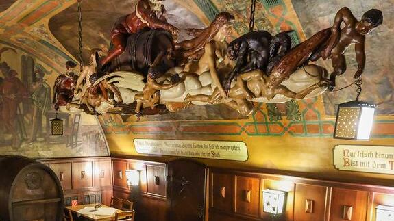 En la escena de la bodega de Auerbach, Mefisto busca embriagar a Fausto. Conjura un vino delicioso y, más tarde, sale de la bodega montado en un barril. Hoy en día, en la llamada bodega de barriles del restaurante, nueve metros bajo tierra, se celebra la popular "ceremonia de la bodega de barriles".