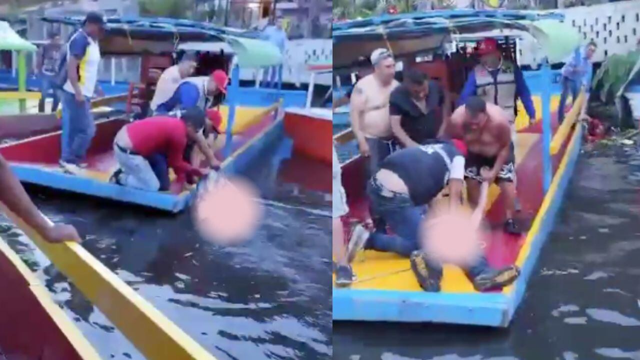 En la grabación se aprecia a los remeros buscar el cuerpo del sujeto para rescatarlo; al momento de encontrarlo, los presentes lo subieron a una trajinera: “Denle la vuelta. Su pecho”, son algunos de los gritos que se pueden escuchar en el clip.