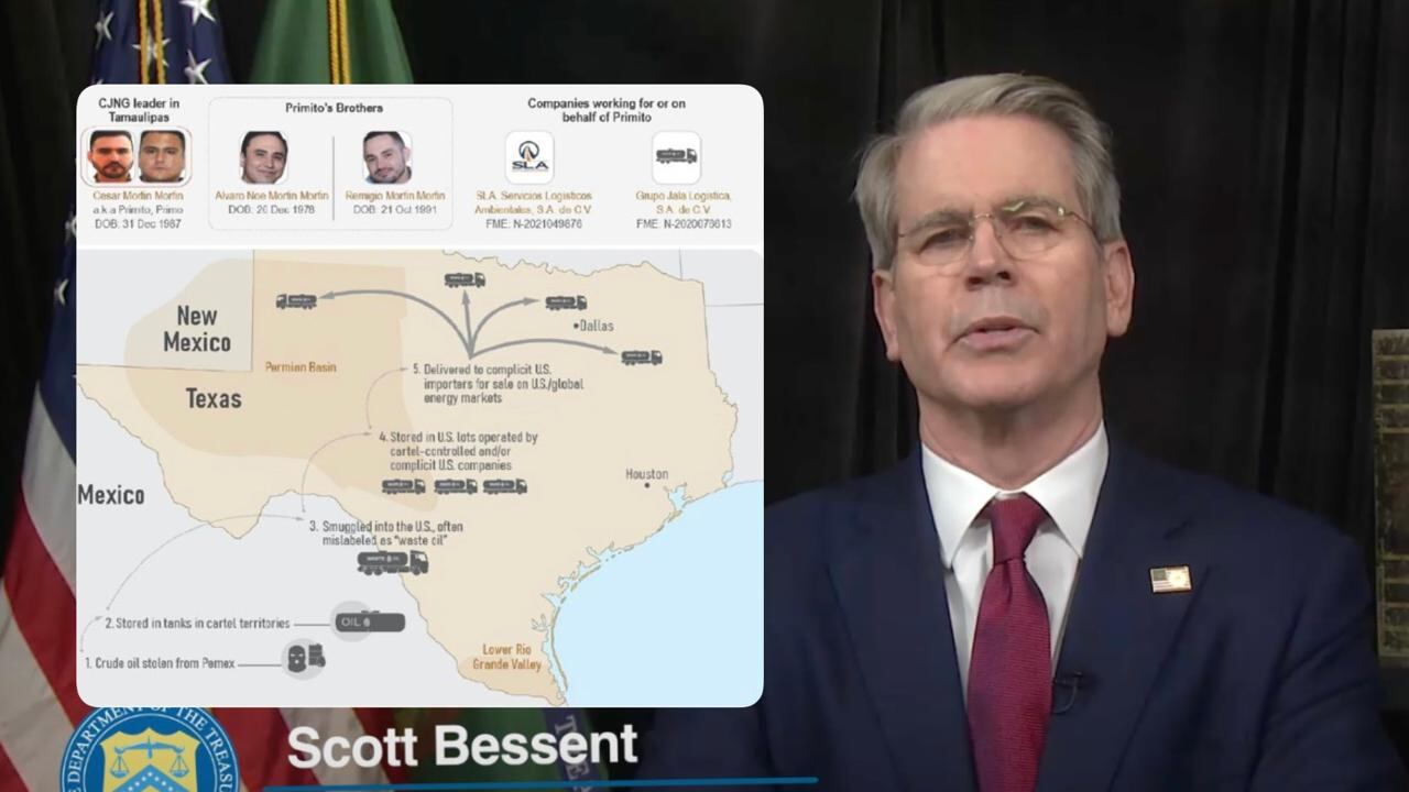 “El robo de combustible y petróleo crudo es la gallina de los huevos de oro para la empresa de narco terrorismo del CJNG”, dijo Scott Bessent, secretario del Tesoro.