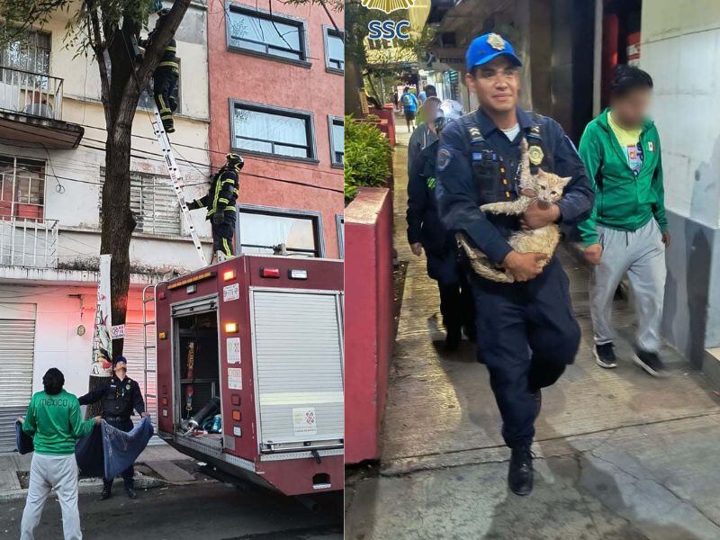“Una vez a salvo, los paramédicos de Protección Civil revisaron al felino y notaron heridas en el mentón y pómulo derecho, por lo que recomendaron al ciudadano llevarlo con un veterinario para su atención; después, el hombre agradeció el apoyo brindado por los oficiales, los bomberos y el personal de PC, para recuperar a su mascota”.