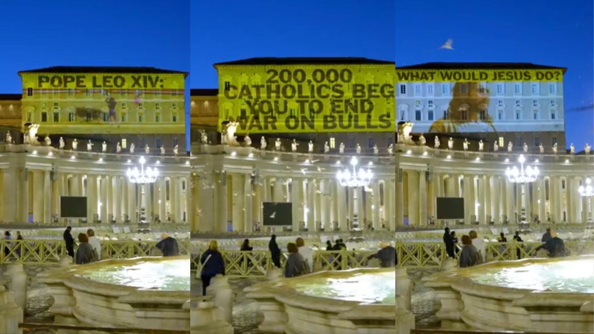 Cerca de 200 mil personas han unido sus voces para pedirle al papa León XIV que condene públicamente las corridas de toros. La petición, impulsada por la organización PETA, fue acompañada por una impactante proyección en el exterior del Palacio Apostólico, donde se encuentra la residencia papal, mostrando el número de firmantes en un llamado urgente a la compasión y cuestionando “¿Qué haría Jesús?“.