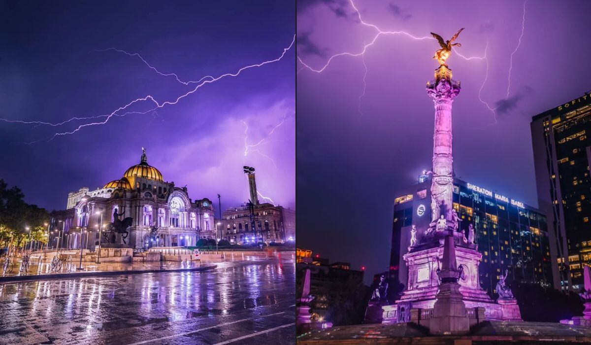 En ellas, se pueden apreciar potentes descargas eléctricas iluminando algunos de los lugares más emblemáticos de la capital mexicana, como el Ángel de la Independencia, el Palacio de Bellas Artes y la Torre Latinoamericana.