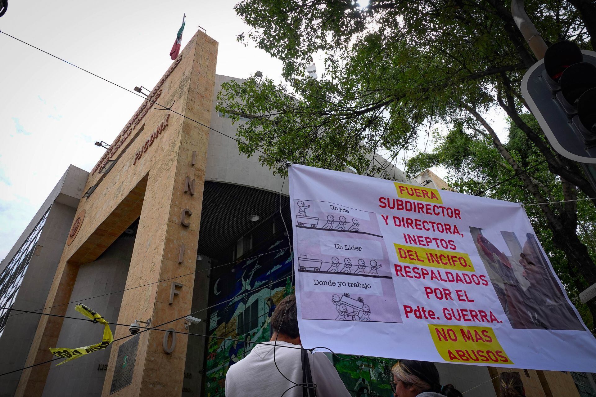 Esta imagen fue exhibida públicamente en una pancarta durante protestas de peritos frente a las instalaciones del instituto, generando indignación entre familiares de personas desaparecidas y organizaciones defensoras de derechos humanos.