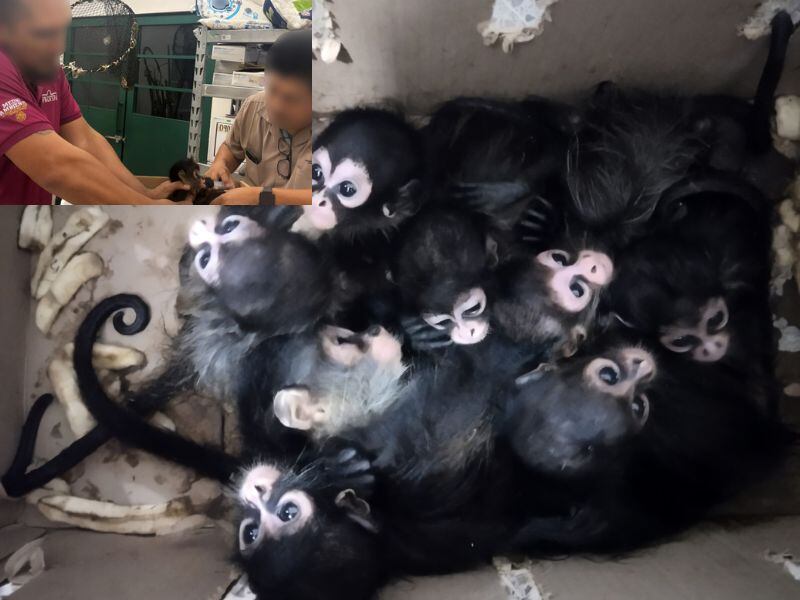 La Procuraduría Federal de Protección al Ambiente (Profepa) detalló que los hechos ocurrieron el 23 de junio, cuando elementos de la policía estatal detectaron a dos personas cuando intercambiaban una caja de cartón en la vía pública, por lo que se acercaron a hacer una revisión y fue en ese momento cuando localizaron a los pequeños monos hacinados.