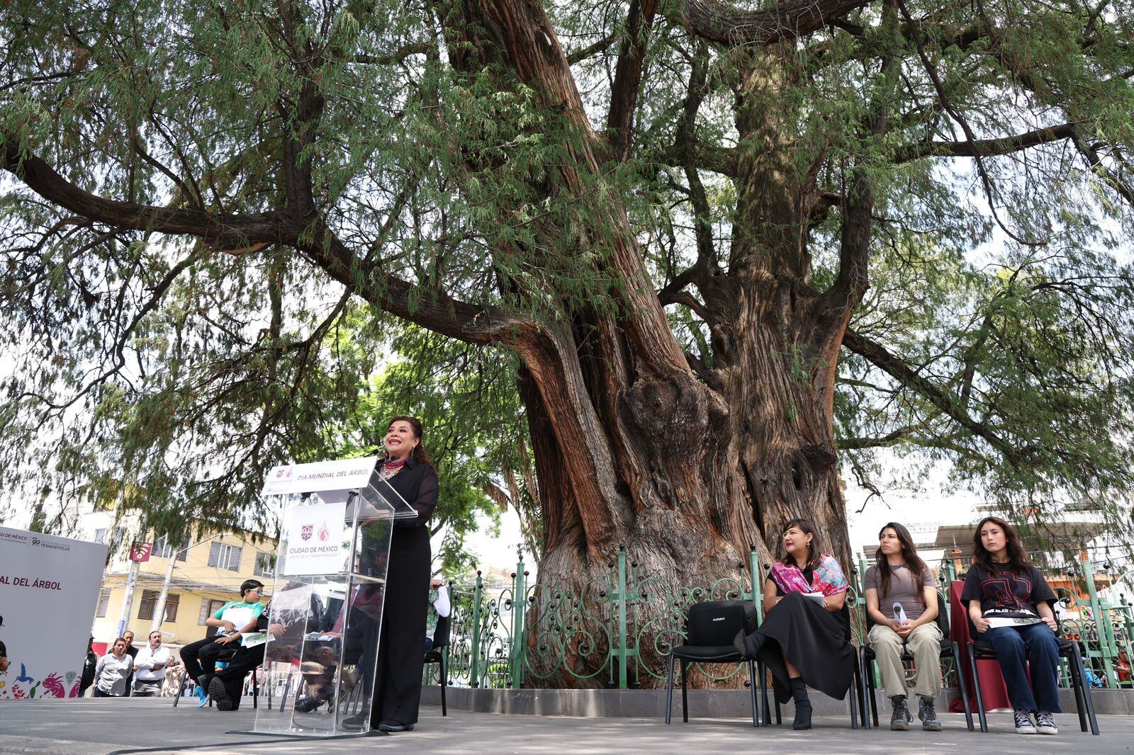”El ahuehuete tiene la misma cantidad de años que la ciudad de Tenochtitlán, 700 años… un árbol que es querido por su comunidad, un árbol que es reconocido, defendido, cuidado, y todos coincidimos, los árboles son vida y tenemos que cuidarlos, los árboles nos dan oxígeno y gracias a los árboles hoy estamos aquí también. Los árboles son testigos de la historia”, refirió la mandataria capitalina.