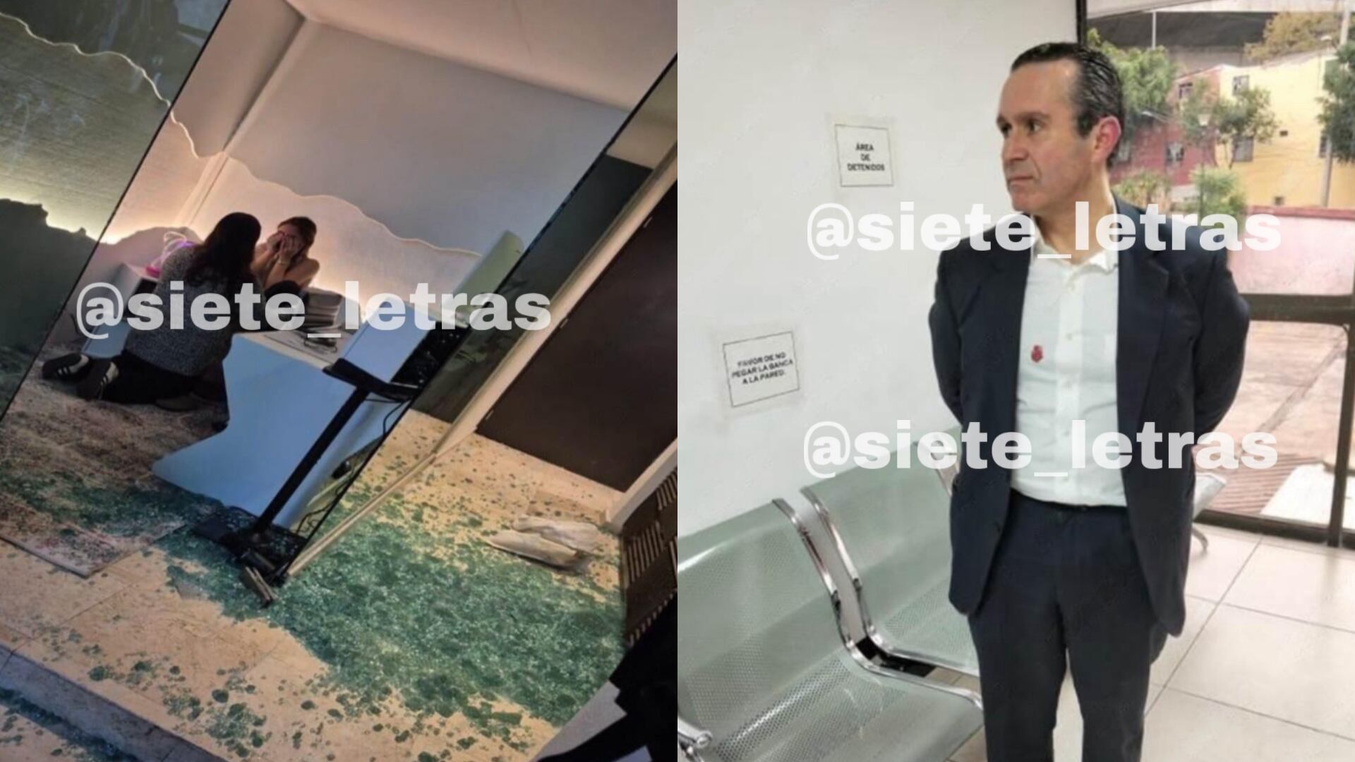 En los videos Rodrigo Orozco Waters intenta evitar a los presentes y, en el forcejeo, destroza las puertas de cristal. Amenaza a la mujer, incluso con la llegada de agentes de seguridad. “A mí me regresas mi dinero (...) ¿Qué le dijiste a mi hijo? Que no le ibas a deber un p.... peso, ¿verdad?“, reclamó el abogado.