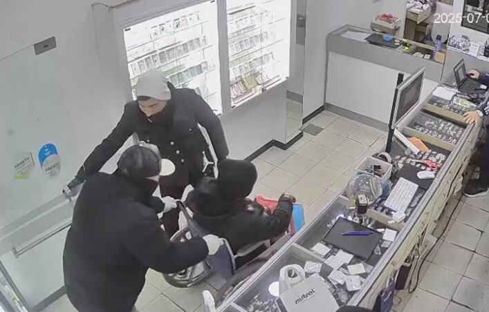 Mientras desocupaban el mostrador, sometieron a los empleados, llevándolos hacia el almacén. En el tumulto, otros dos integrantes del grupo criminal se llevaron con agresividad a un hombre que miraba el escaparate y forzaron a una mujer a permanecer dentro del establecimiento.