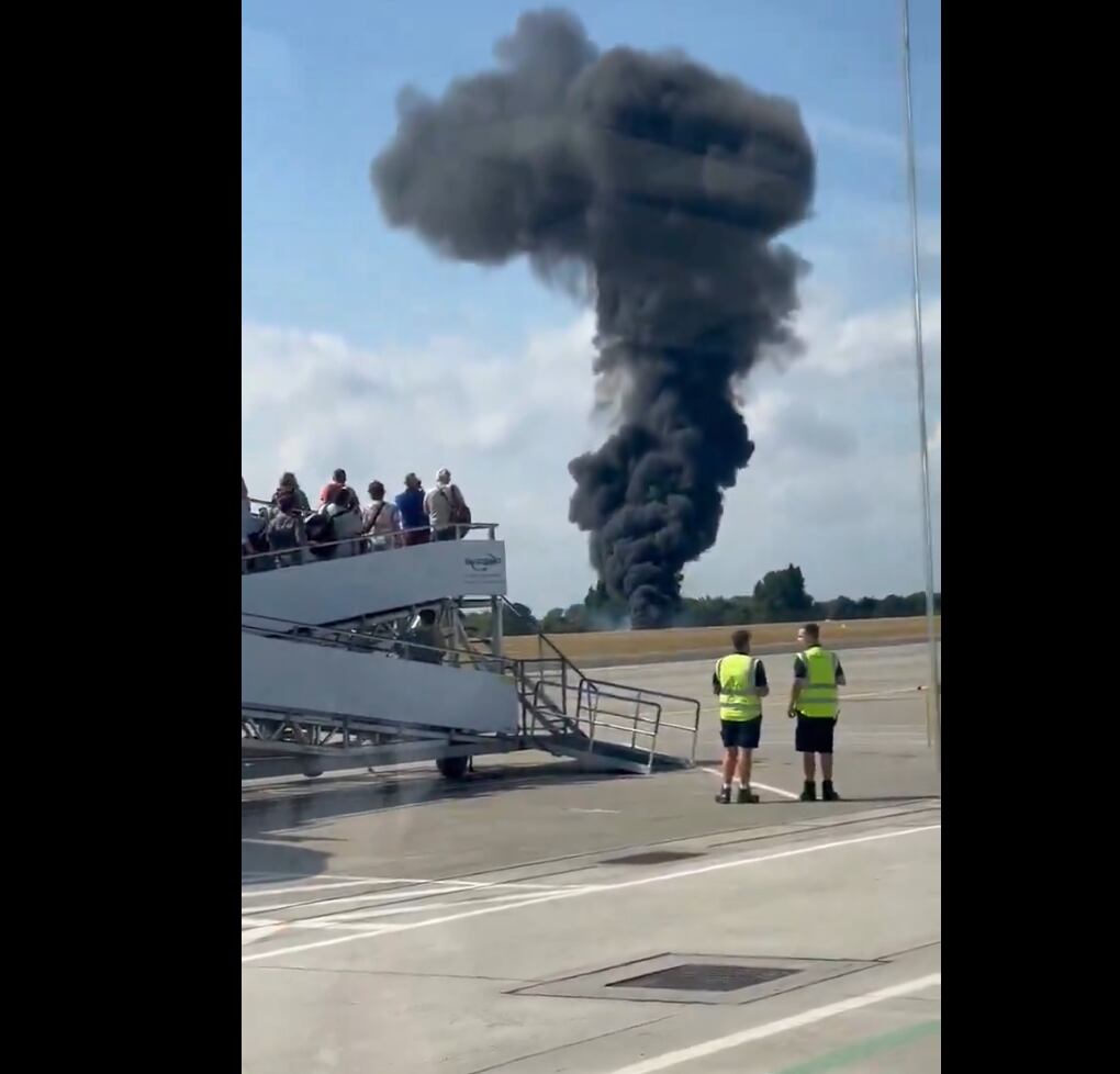 Aunque aún no se ha confirmado el número de personas a bordo ni posibles víctimas, imágenes difundidas en redes sociales muestran la magnitud del siniestro, con una densa nube de humo negro saliendo desde el interior del aeropuerto.