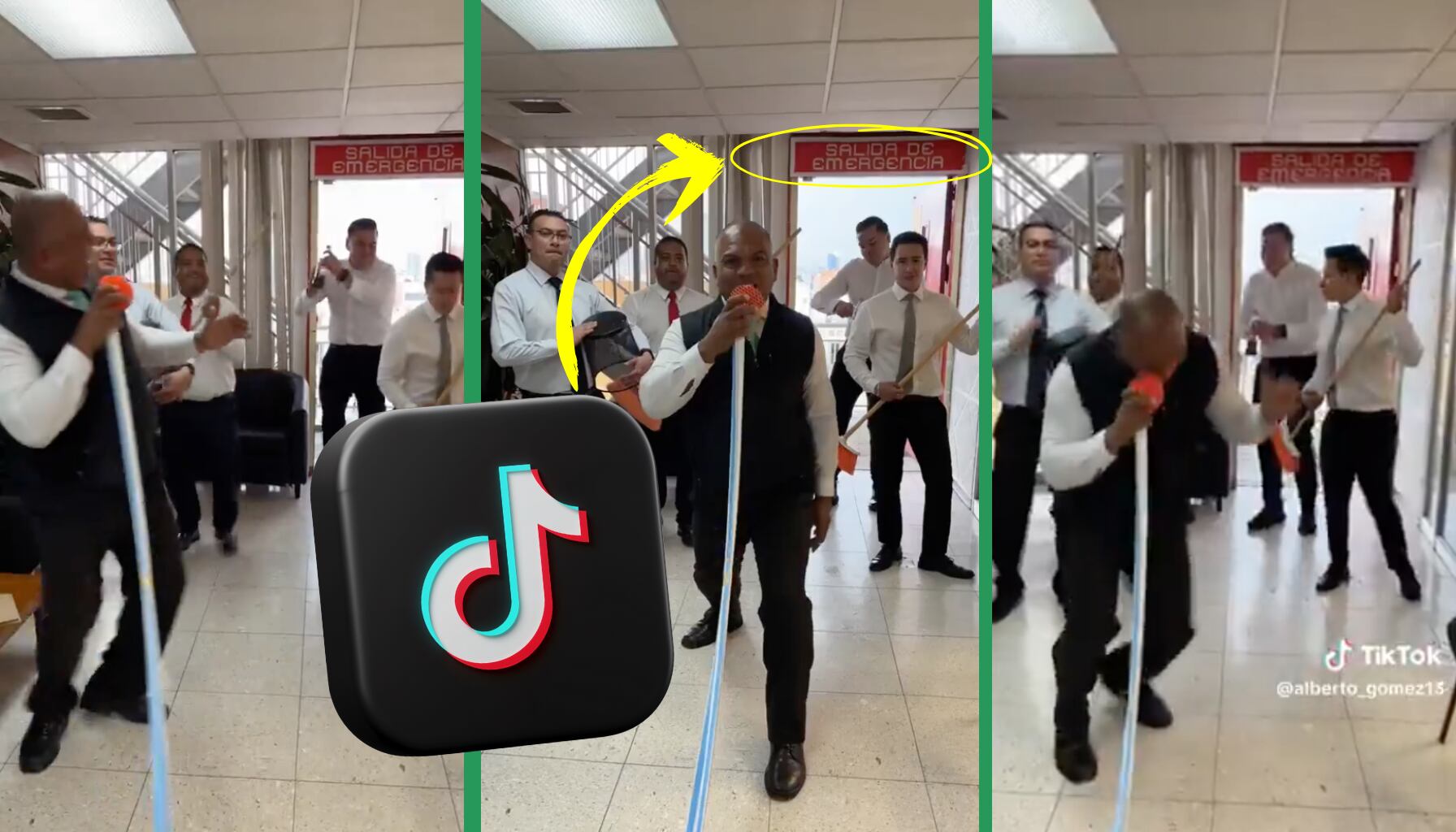 En el video, se observa a varios hombres en camisa y corbata, dentro de lo que parecen ser instalaciones administrativas del Metro CDMX, simulando una presentación musical mientras uno de ellos canta y los demás hacen coros y movimientos coreografiados. La grabación ocurre justo frente a un letrero de “Salida de emergencia”, lo que refuerza la idea de que se trata de un espacio oficial del sistema de transporte.