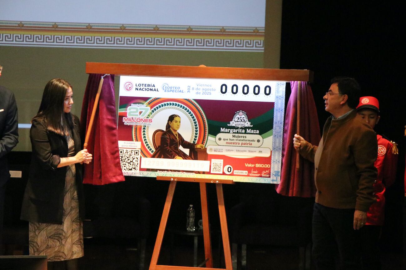 La directora general de la Lotería Nacional, Olivia Salomón, encabezó la develación del billete de lotería para el sorteo 302, que rendirá homenaje a las 24 mujeres transformadoras de México, entre las que destacan Elvia Carrillo Puerto y Margarita Maza, por mencionar algunas, y sus rostros estarán impresos en este billete conmemorativo.