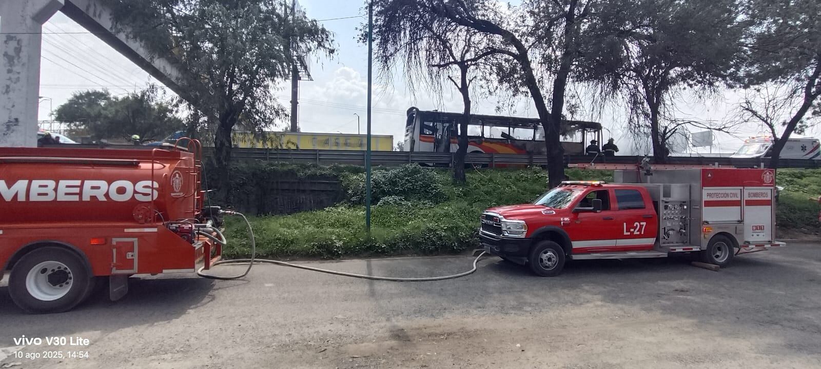 En medio del asombro de pasajeros y otros automovilistas, tanto la motocicleta como el autobús comenzaron a incendiarse, mientras algunos intentaban auxiliar al motoristas, quien presentaba graves lesiones debido a la fuerza del encontronazo