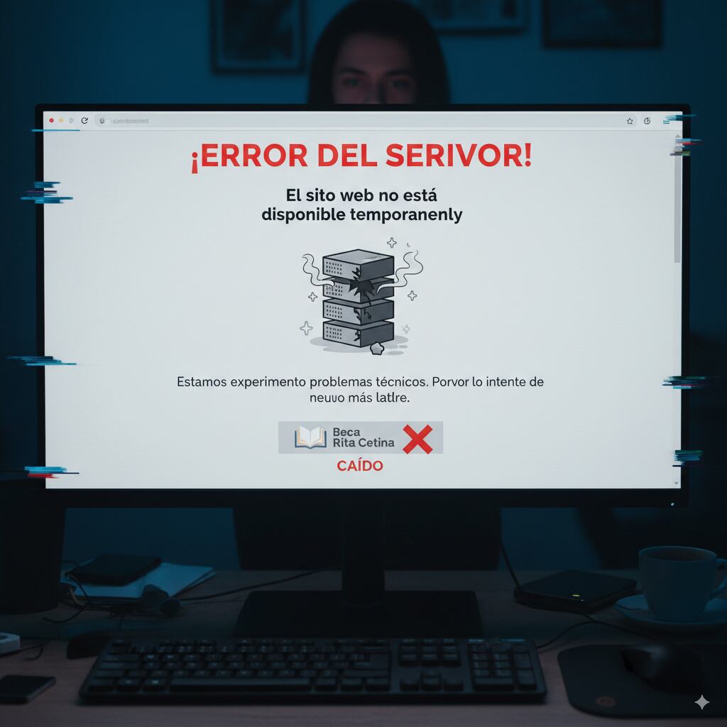 El portal www.becaritacetina.gob.mx muestra mensajes de caída o inaccesibilidad, indicando que el servidor podría estar sobrecargado, caído o en mantenimiento, según reporta el propio sitio.