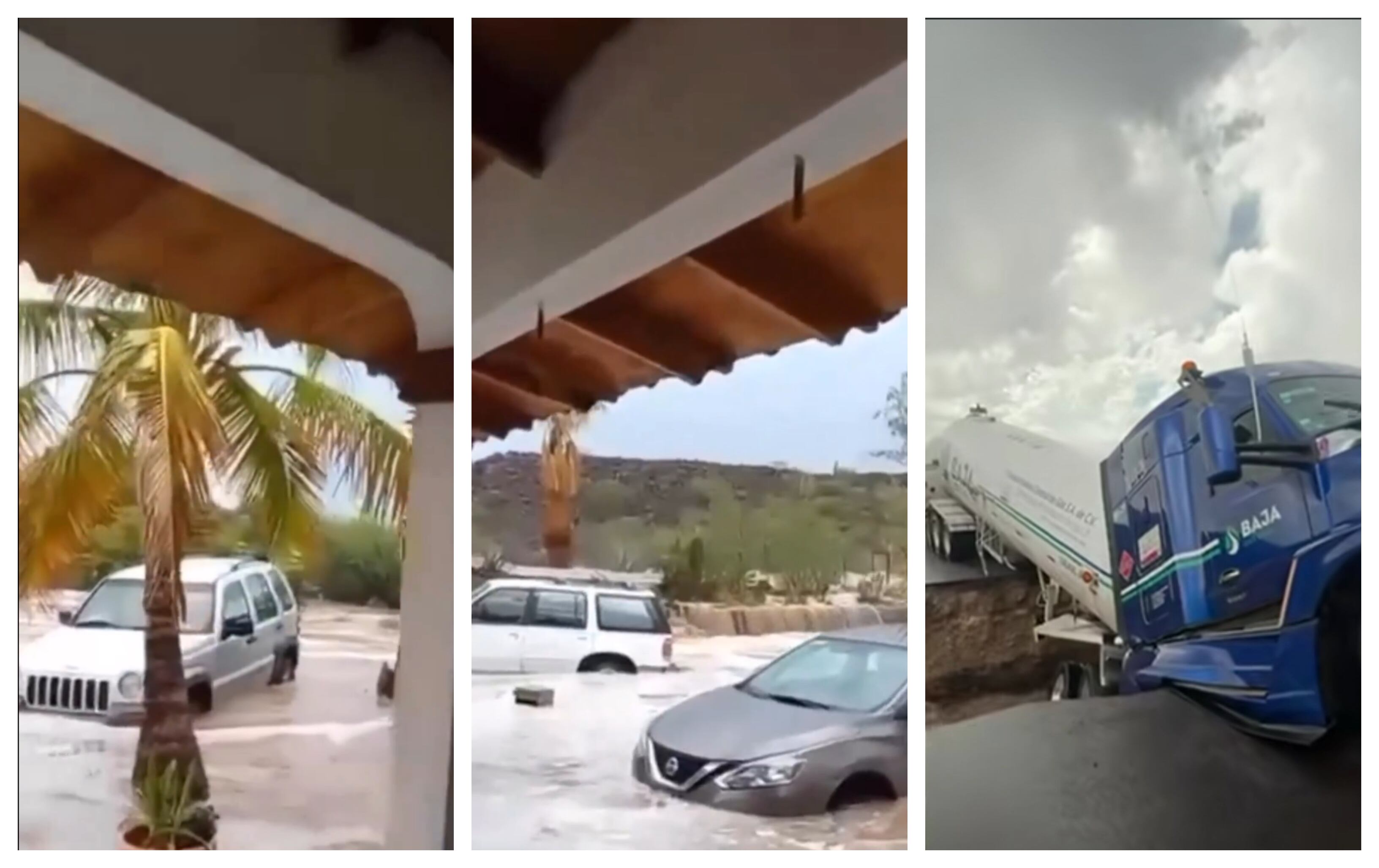 Las precipitaciones provocaron el colapso de un tramo de la carretera Transpeninsular en San Ignacio, dejando la zona incomunicada, además de la caída de postes en Villa Morelos y severas inundaciones en viviendas.
