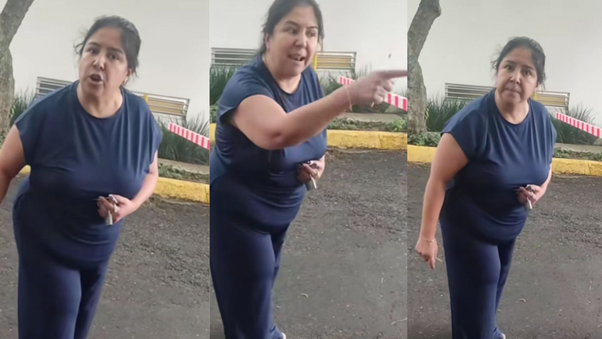 Un vecino se acerca al lugar para intentar calmar la situación y le pide a la mujer que baje la voz, a lo que ella responde que también es dueña del lugar. La discusión escala hasta que se observa la llegada de una patrulla, momento en el que la mujer, lejos de calmarse, amenaza con bloquear el acceso al fraccionamiento: “Nadie va a entrar ni salir” y la grabación culmina en ese momento.