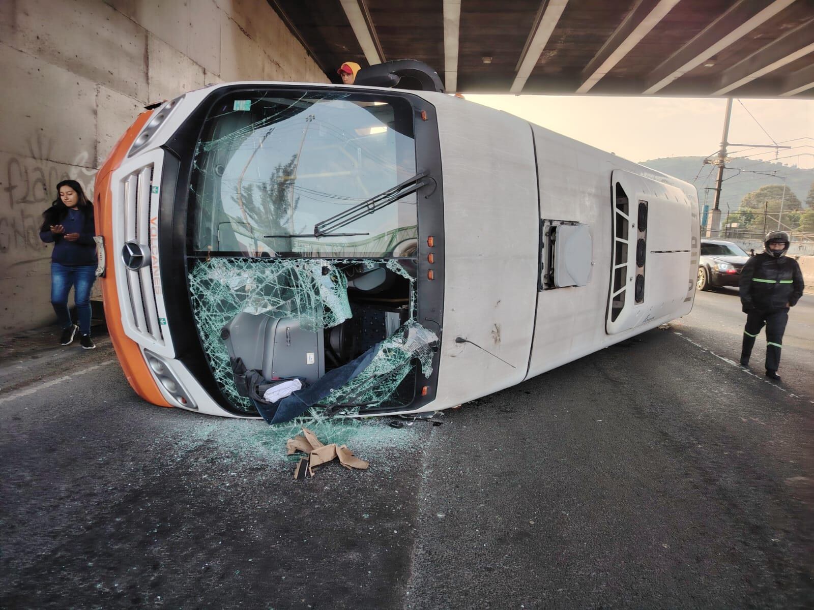 Según los bomberos de la CDMX, informaron que el autobús se volcó sobre el costado izquierdo, por lo que procedieron a colocarlo en una posición normal. Las autoridades auxiliaron solo a cinco personas lesionadas.