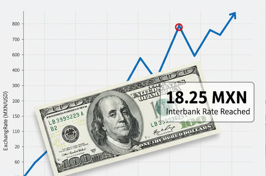 En este contexto, el Banco de México (Banxico) informó que el tipo de cambio cerró –este lunes 8 de dic9iembre de 2025– en 18.25 pesos por dólar, con un alza de siete centavos respecto al viernes pasado.