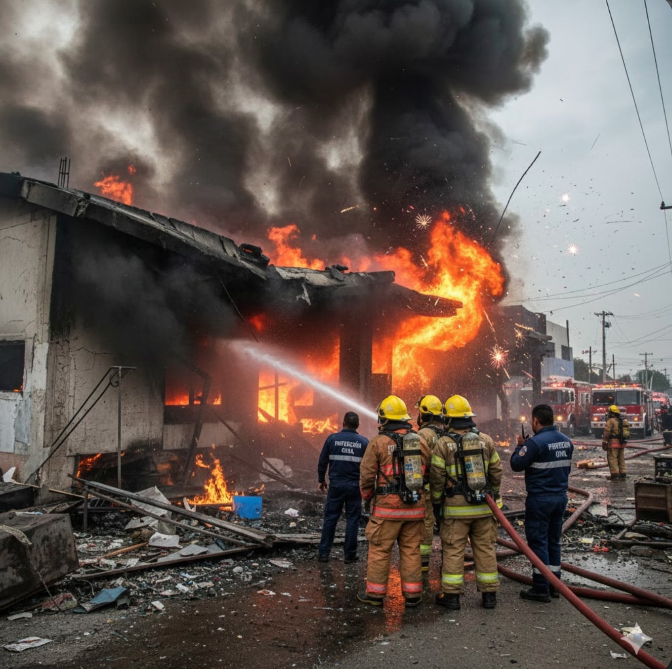 Tras la detonación se generó un incendio dentro del inmueble, por lo que elementos del Heroico Cuerpo de Bomberos de Tultepec acudieron al sitio para sofocar las llamas y evitar que el fuego se propagara a las viviendas aledañas.