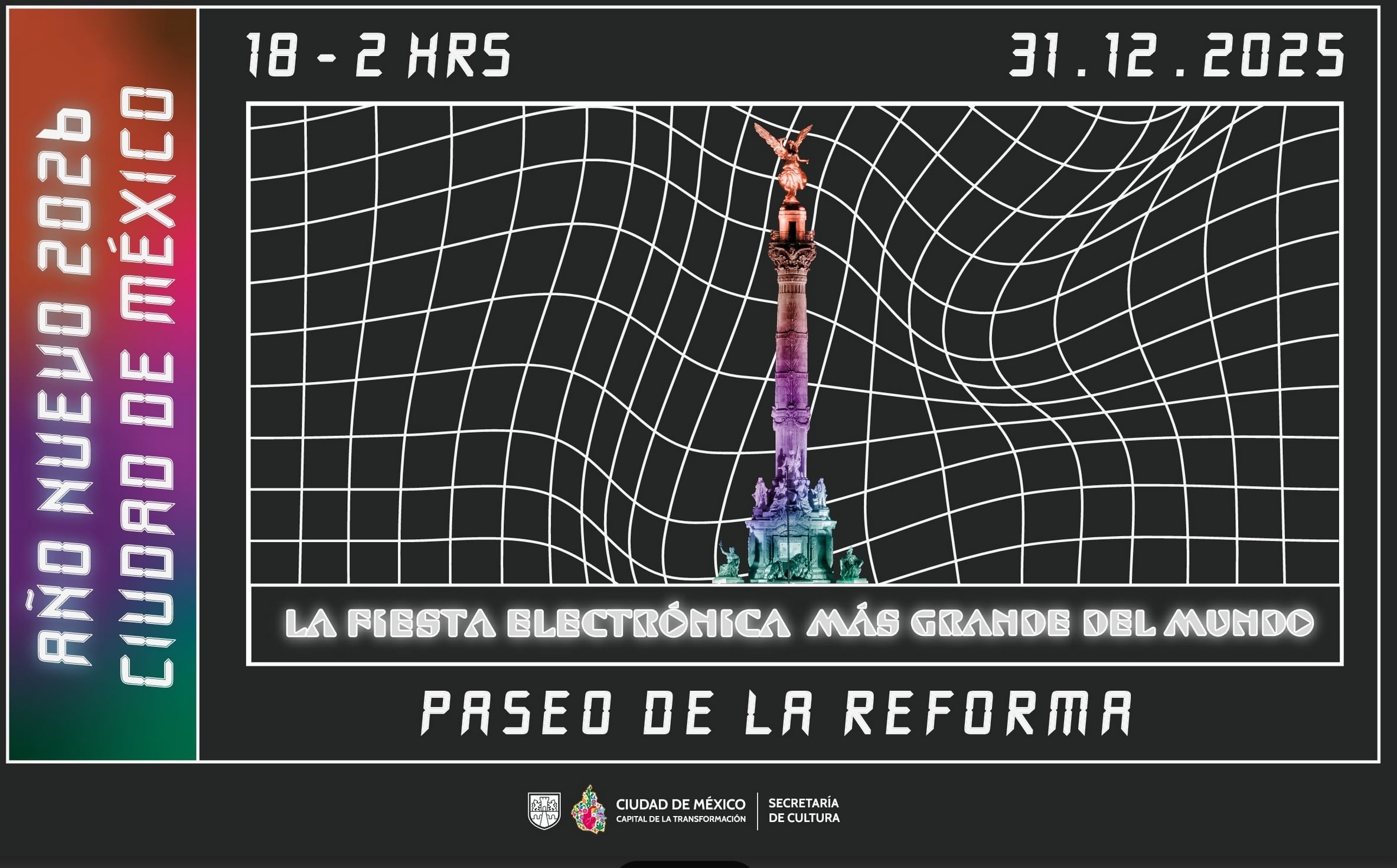 La cita es el martes 31 de diciembre, a partir de las 18:00 horas y hasta las 2:00 de la mañana, sobre Paseo de la Reforma, uno de los corredores más emblemáticos de la capital.