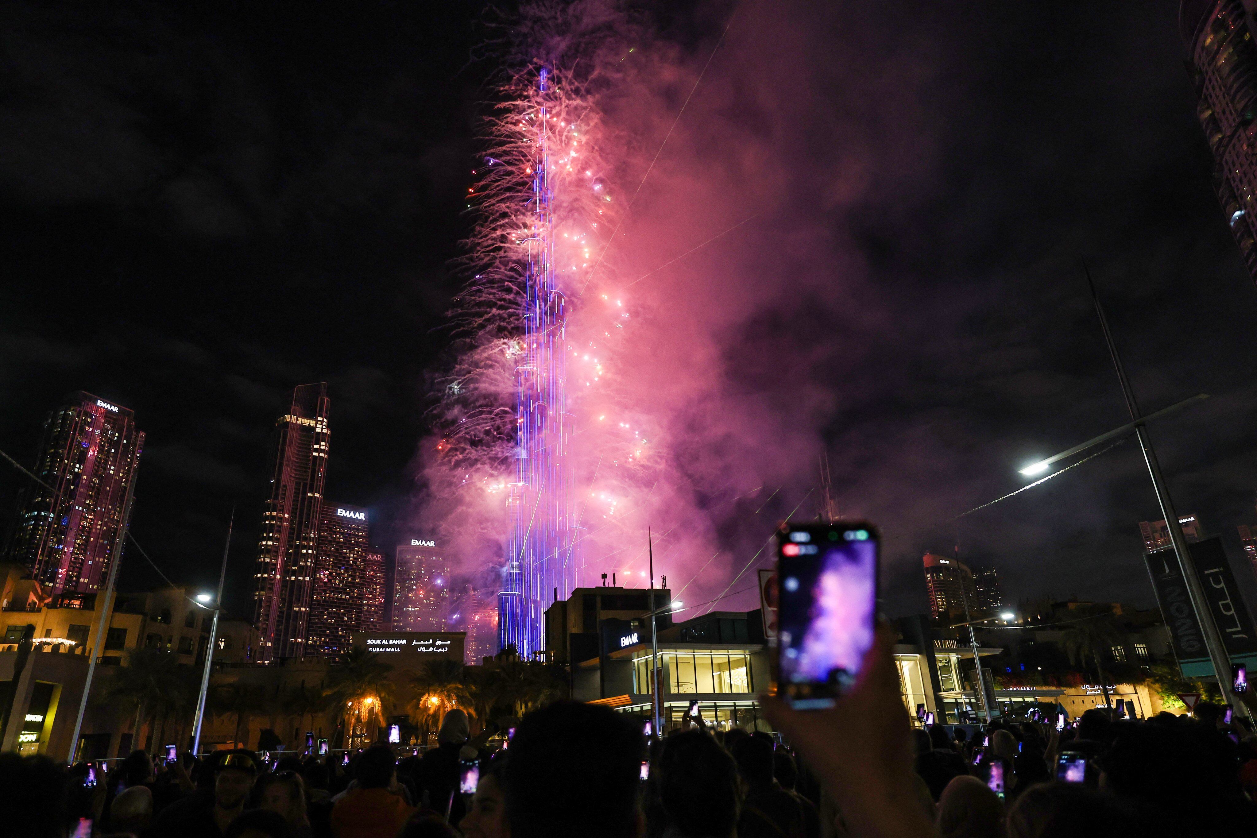 El show incluyó la aparición de los números “2026” a lo largo de la estructura y fue visible a kilómetros de distancia. Además, el espectáculo se complementó con las fuentes danzantes de Dubai Fountain y fue transmitido en tiempo real a millones de espectadores en todo el mundo.