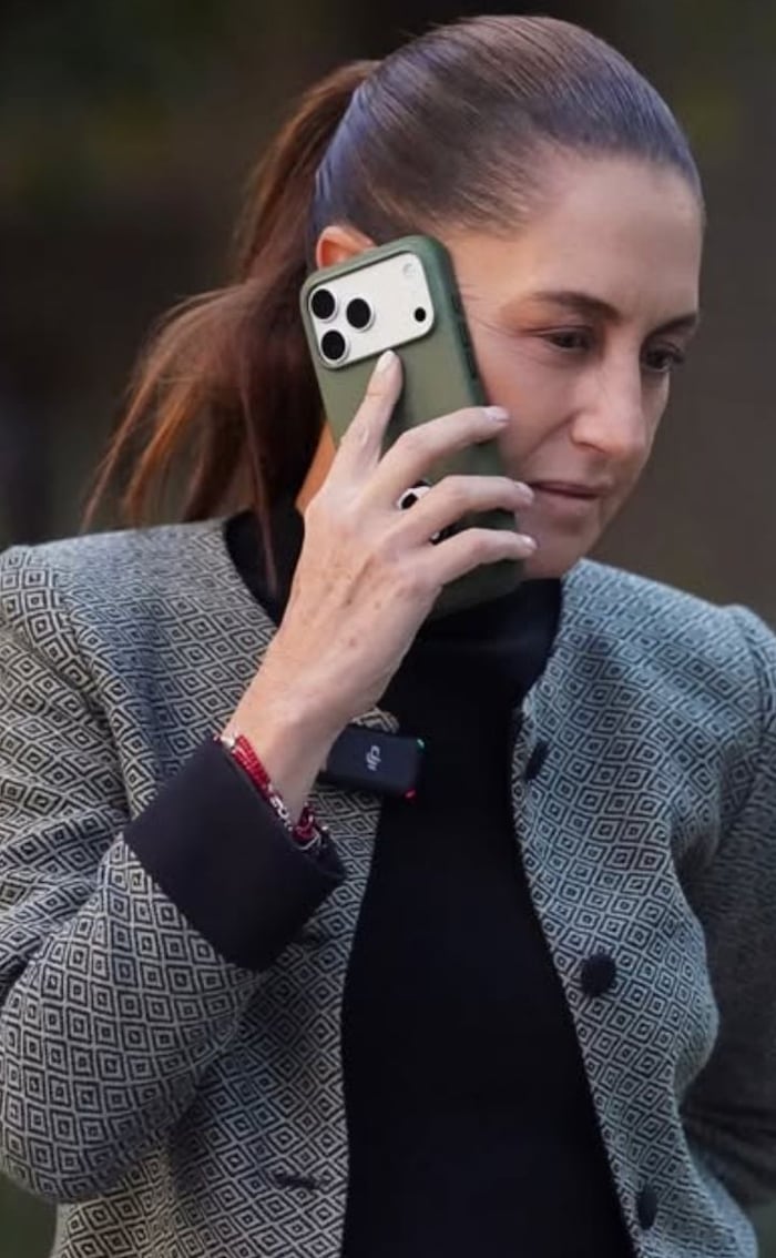 Un “¿Bueno?” bastó para prender la conversación. En un posteo reciente en redes sociales, Claudia Sheinbaum publicó una imagen en la que aparece atendiendo una llamada telefónica, con el celular pegado al oído, mientras mira hacia abajo con gesto serio y concentrado.
