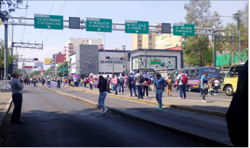 La movilización inició en el cruce de Avenida Cuauhtémoc y Viaducto Miguel Alemán, en la colonia Piedad Narvarte, y avanzó por Eje 1 Poniente Cuauhtémoc y Municipio Libre.