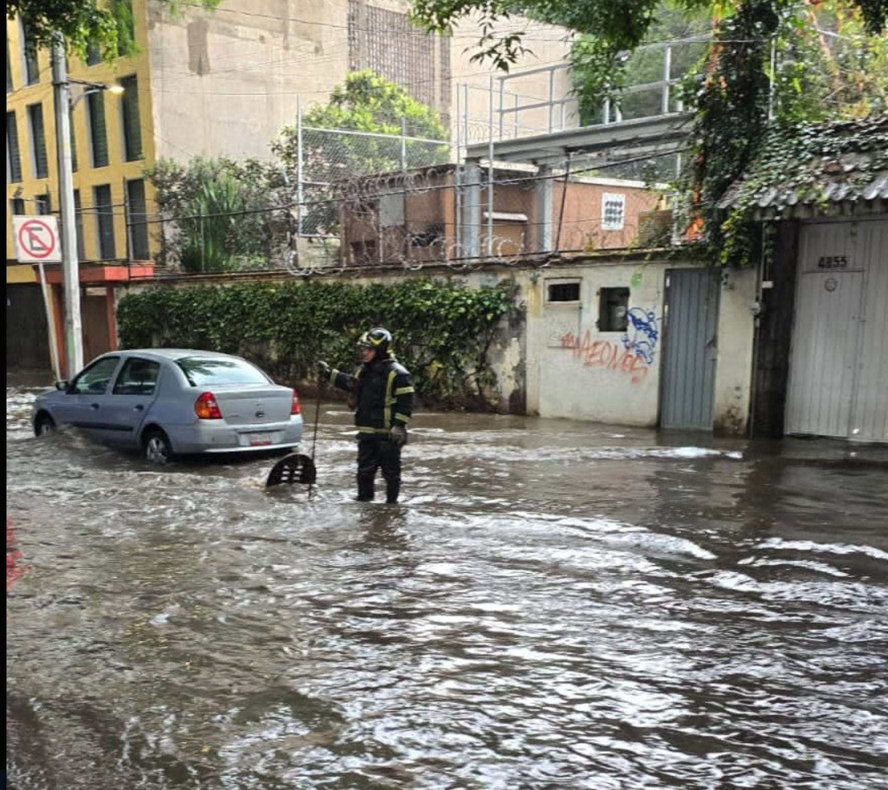 Las precipitaciones, acompañadas de fuertes vientos, ocasionaron la caída de árboles en distintos puntos de la ciudad. Uno de los incidentes más relevantes se registró en la zona de Pensilvania y Eje 5 Sur, donde la circulación fue cerrada mientras bomberos realizaban maniobras para seccionar y retirar un ejemplar de gran tamaño.