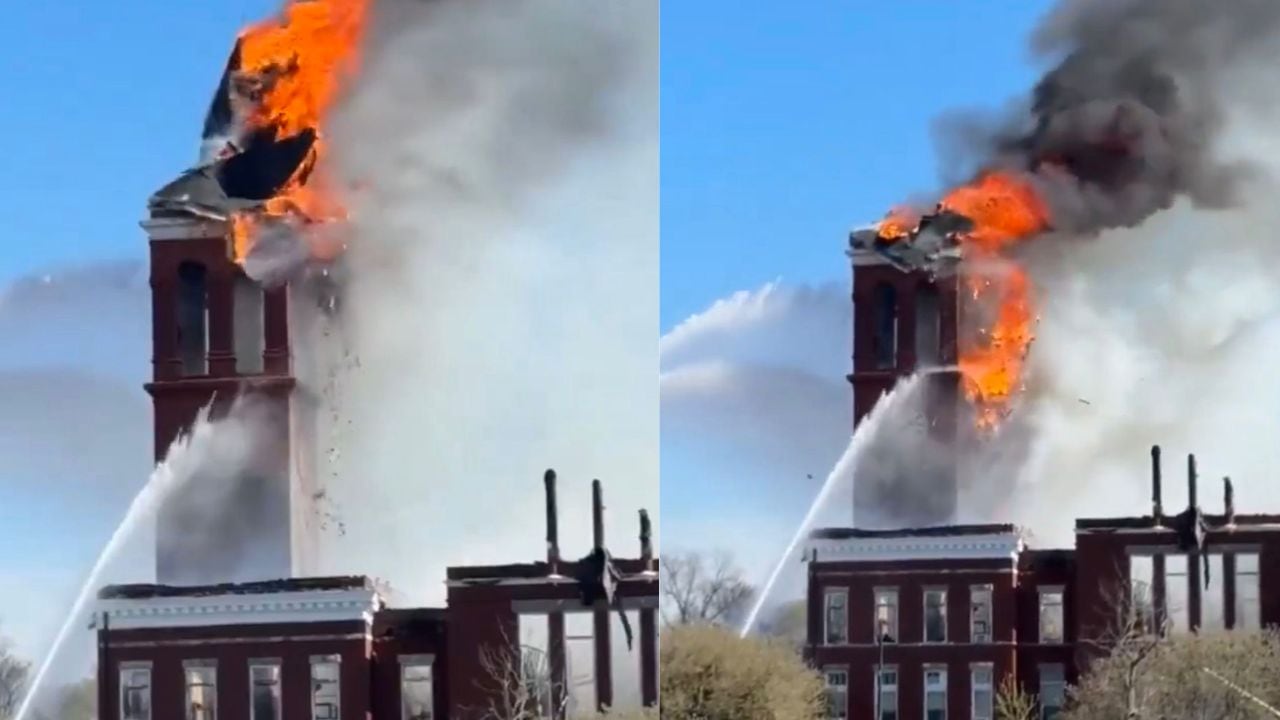 De acuerdo con reportes de autoridades locales y medios estadounidenses, el edificio fue completamente envuelto por el fuego durante la tarde del lunes, lo que derivó en el colapso de su emblemática torre.