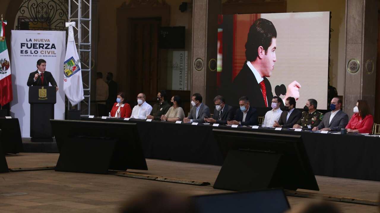 El gobernador de Nuevo León, Samuel García, anunció la refundación de Fuerza Civil y un proyecto ambicioso de subir a 7 mil 500 el número de sus elementos, así como un importante gasto en seguridad para la entidad de 750 millones de pesos.