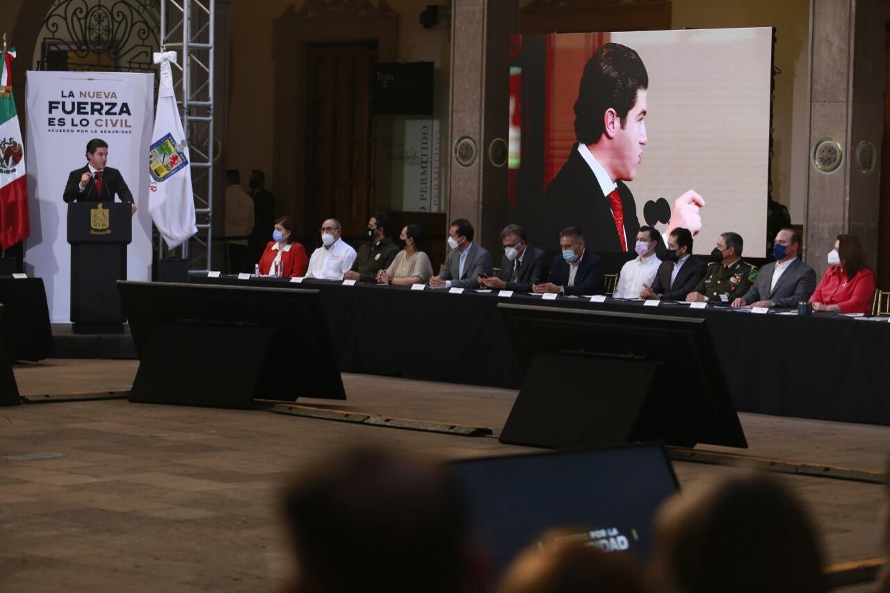 Prioridad. El gobernador, Samuel García, destacó que la seguridad es fundamental para poner en orden a un estado rico en desarrollo social y económico
