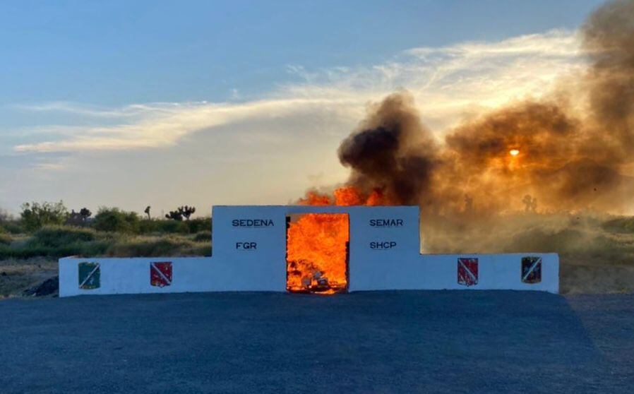 También se realizaron eventos ordinarios de incineración en donde se destruyeron siete toneladas 278 kilos 288 gramos 57 miligramos de estupefacientes, en coordinación con la Secretaría de la Defensa Nacional (Sedena).