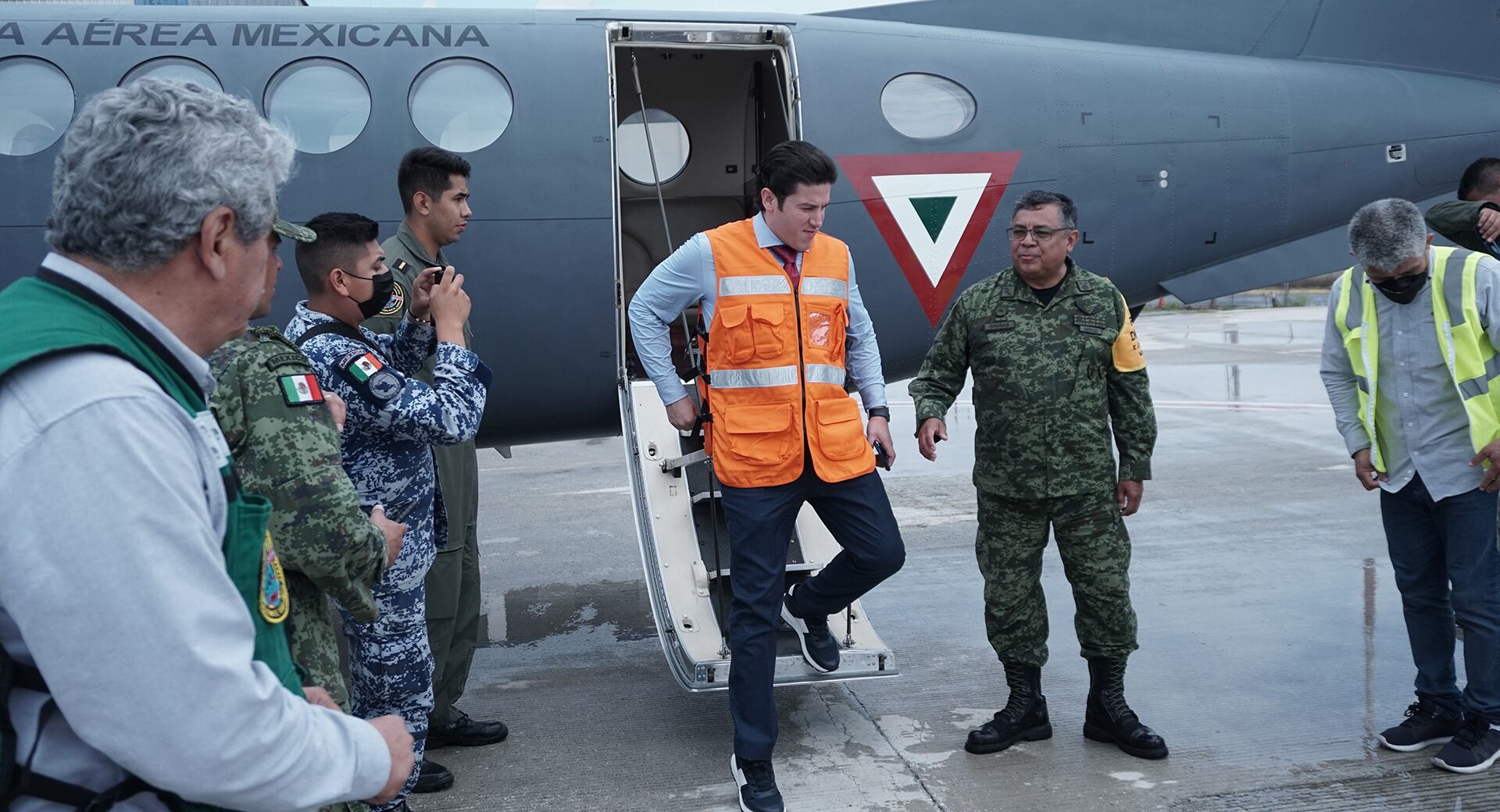 El emecista viajó acompañado de representantes de la Secretaría de la Defensa Nacional (Sedena), Comisión Nacional del Agua (Conagua) y otras dependencias federales.