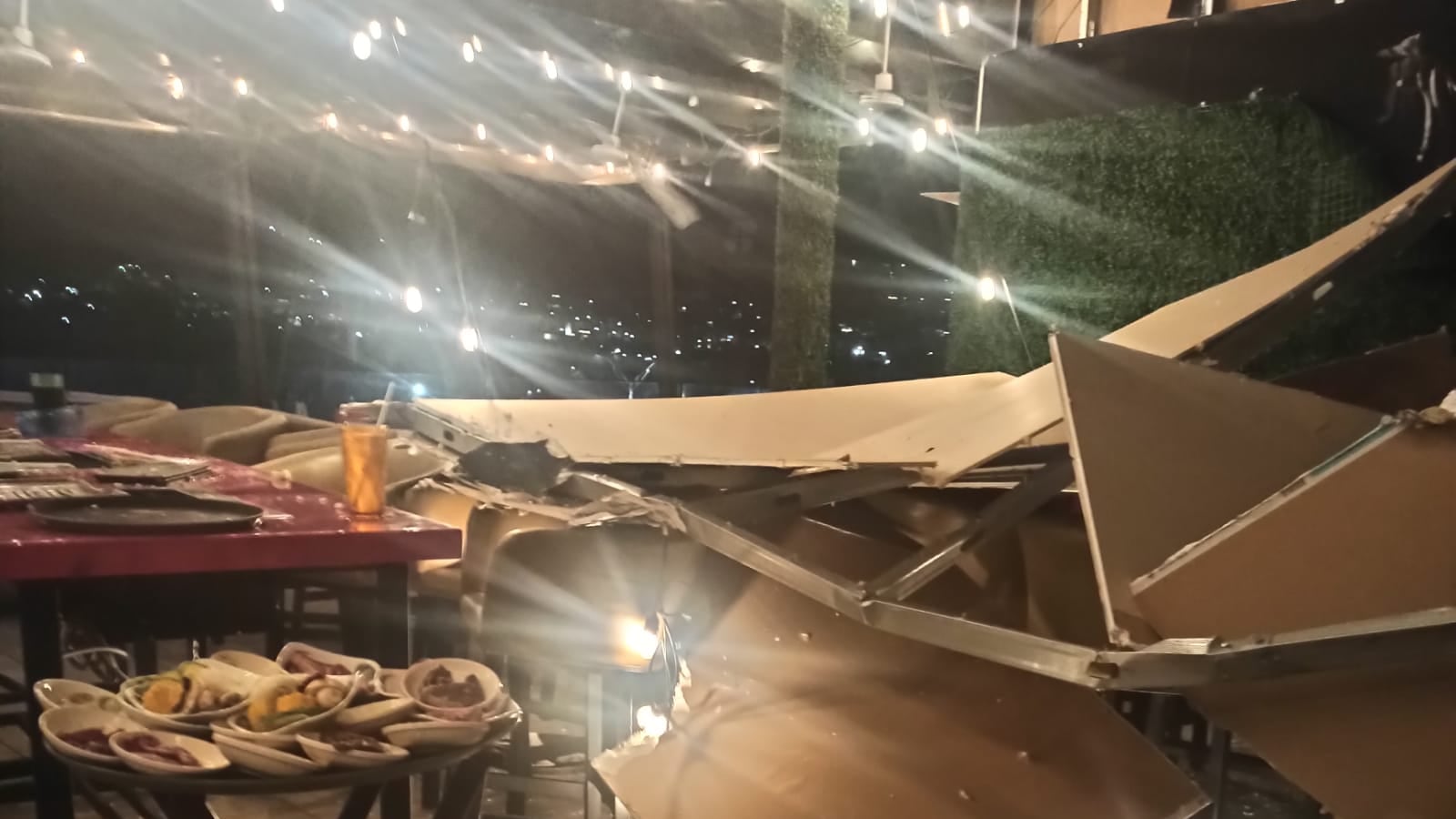 Trascendió que a la llegada de las unidades se confirmó la caía de una pared de tablaroca en el área en donde se encontraban los comensales.