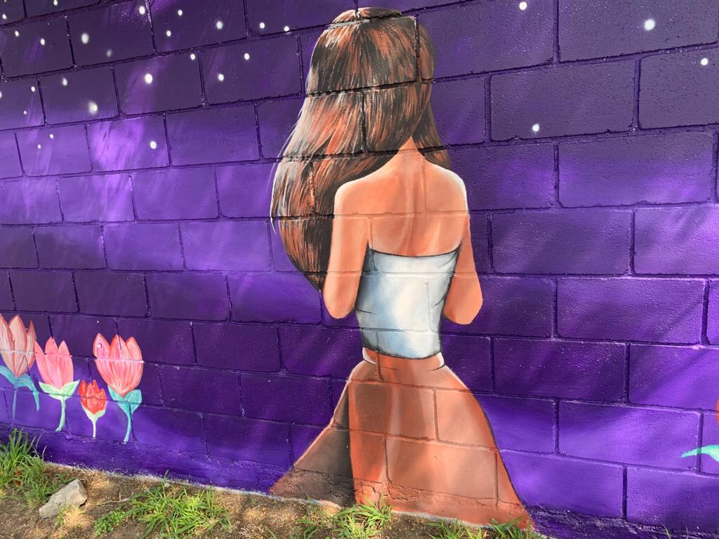 Sobre un fondo morado, rodeada de flores y un cielo estrellado aparece la figura de Debanhi Susana Escobar Bazaldúa, la joven estudiante de la Facultad de Leyes que desapareció tras asistir a una fiesta en una quinta y su cuerpo fue hallado 13 días después en la cisterna del motel Nueva Castilla, en Escobedo.
