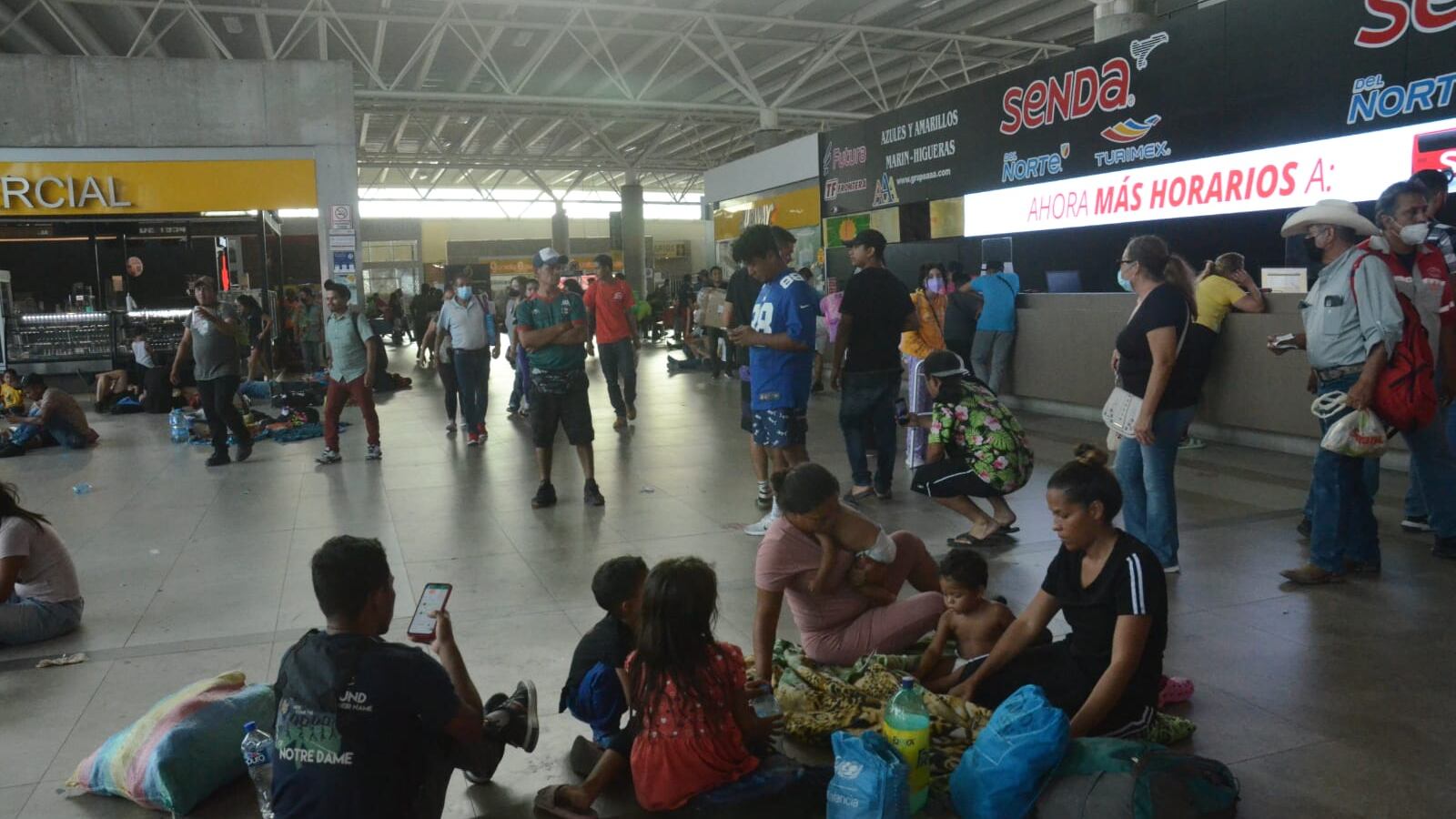 Los migrantes se hallan prácticamente acampando en las instalaciones de la Central de Autobuses y sus alrededores, lo cual ha causado incomodidad a algunos pasajeros porque algunos de ellos se les ha visto haciendo sus necesidades en la vía pública debido a que los baños de la terminal cobran 5 pesos.