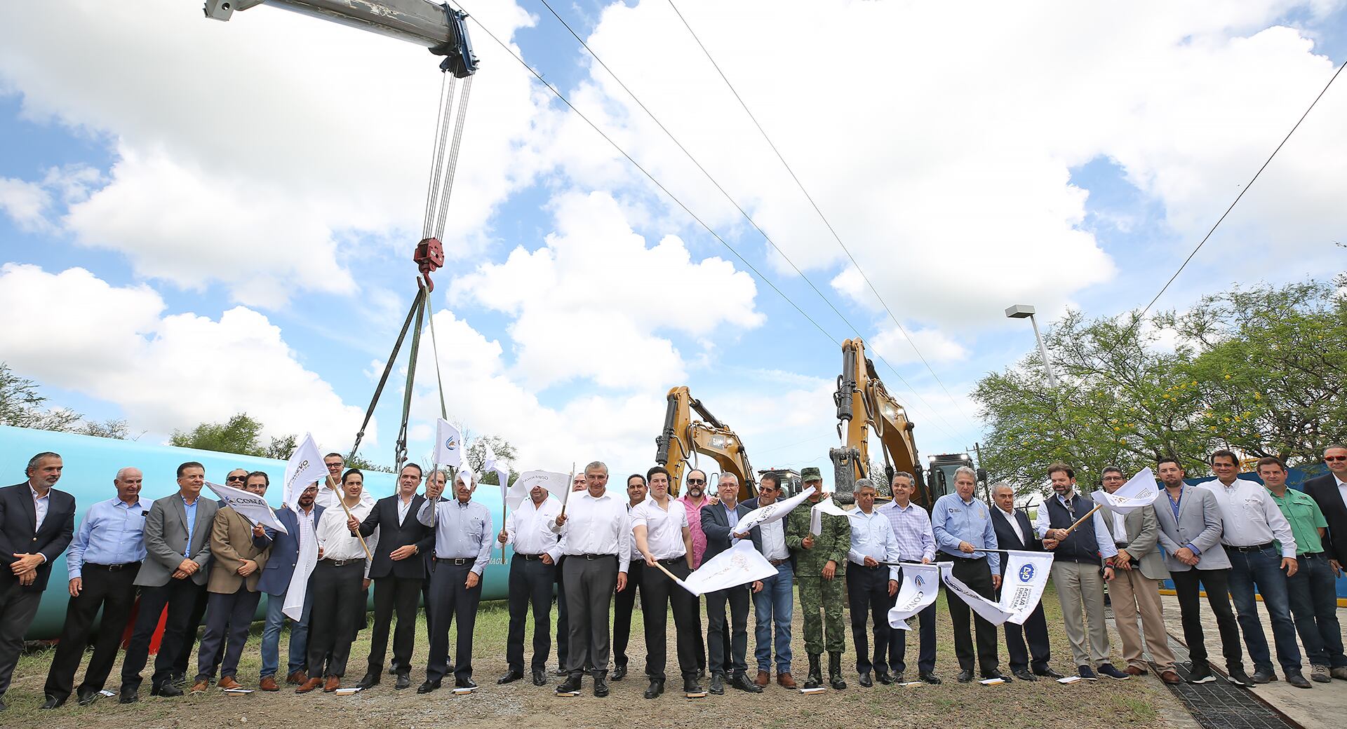 Además de García y López participaron en el banderazo de arranque de obra Juan Ignacio Barragán, director de Servicios de Agua y Drenaje de Monterrey; Germán Martínez, director de CONAGUA; el general Norberto Cortés, Comandante de la IV Región Militar.
