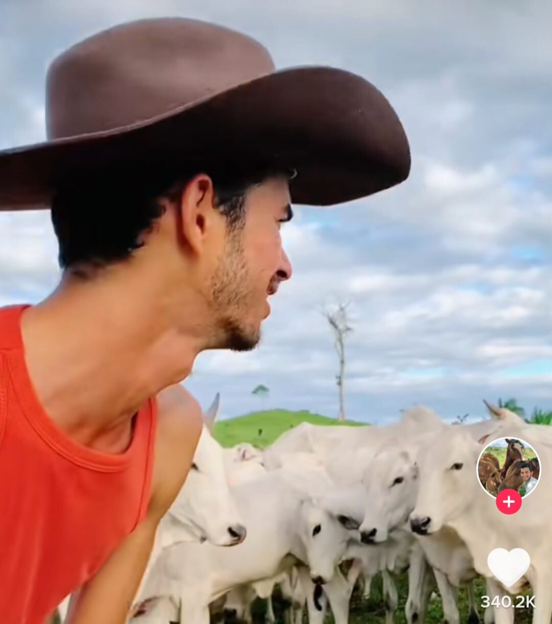 El usuario de la red social, identificado como Thawan vivió momentos chuscos al intentar bailar rodeado de ganado, pero cada vez que trataba una presentar la coreografía un a vaca lo atacaba.