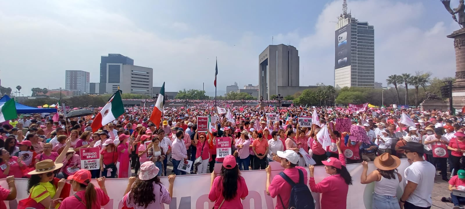 A decir de los organizadores de la concentración en defensa del INE, la Explanada de los Héroes, en Monterrey, les quedó “chica” porque superaron la cifra de 30 mil asistentes; sin embargo, Protección Civil Nuevo León informó que fueron 22 mil las personas que acudieron al llamado de asociaciones civiles.