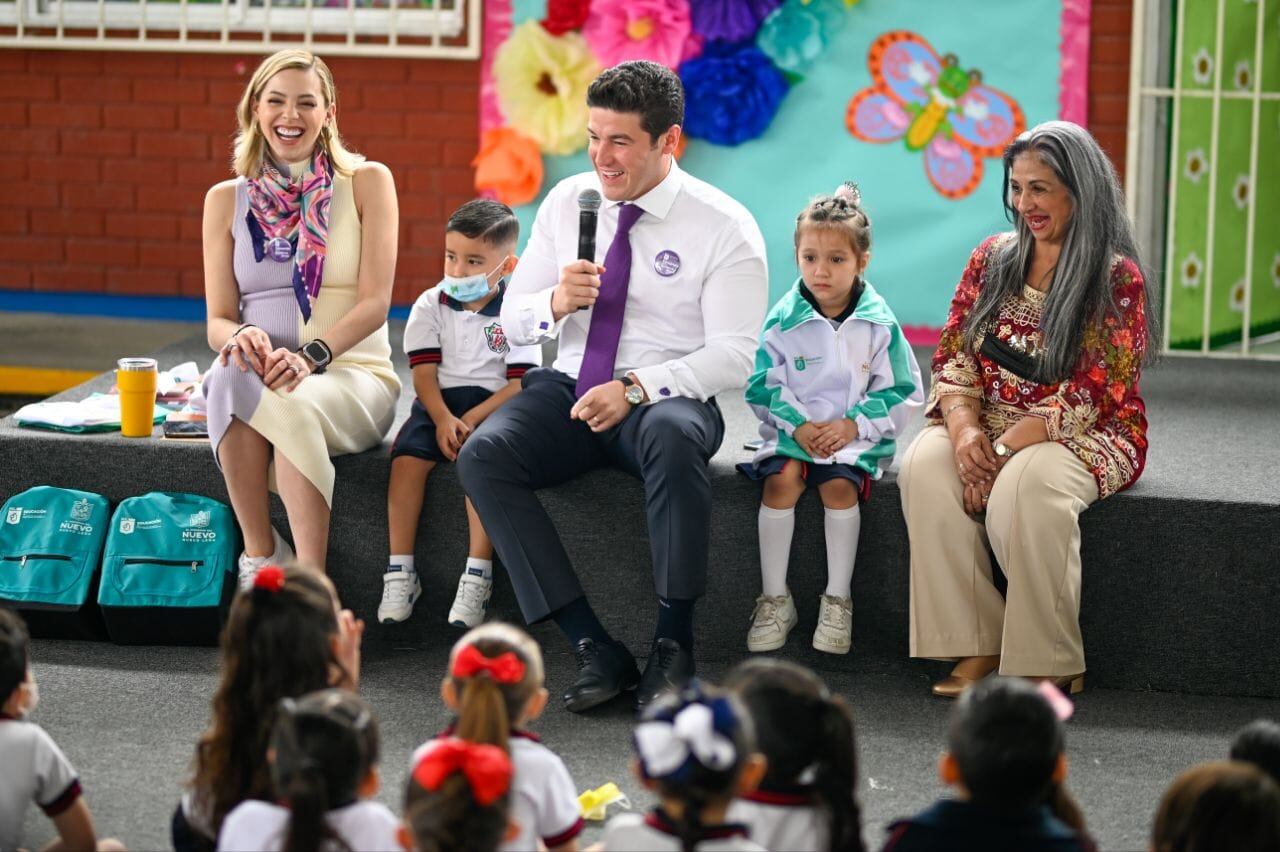 Acompañado de Mariana Rodríguez, de AMAR a Nuevo León y de Sofialeticia Morales Garza, titular de Educación en la entidad, García sostuvo un divertido diálogo con los alumnos durante el cual no faltaron los chistes y la participación de los niños.