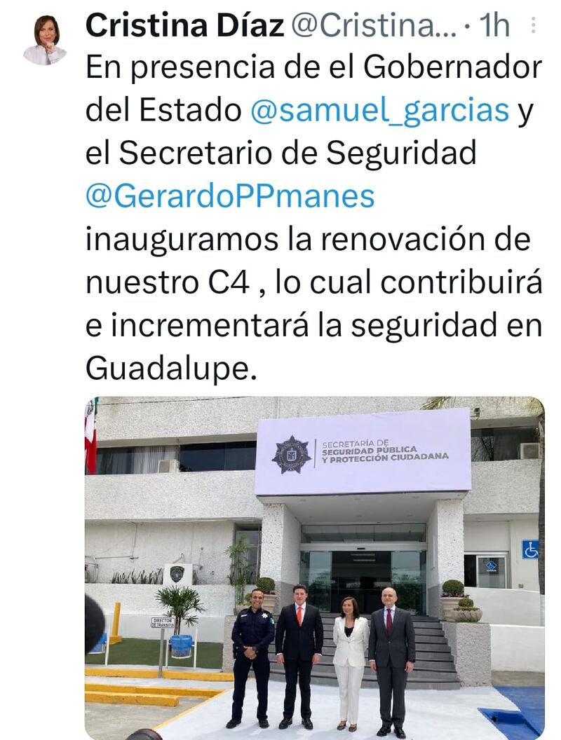 La apertura fue encabezada por Samuel García, gobernador de Nuevo León; Cristina Díaz, presidenta municipal de Guadalupe; Daniel Carrillo, alcalde de San Nicolás; Gerardo Palacios Pámanes, secretario de Seguridad y Pedro Arce, encargado de despacho de la Fiscalía.