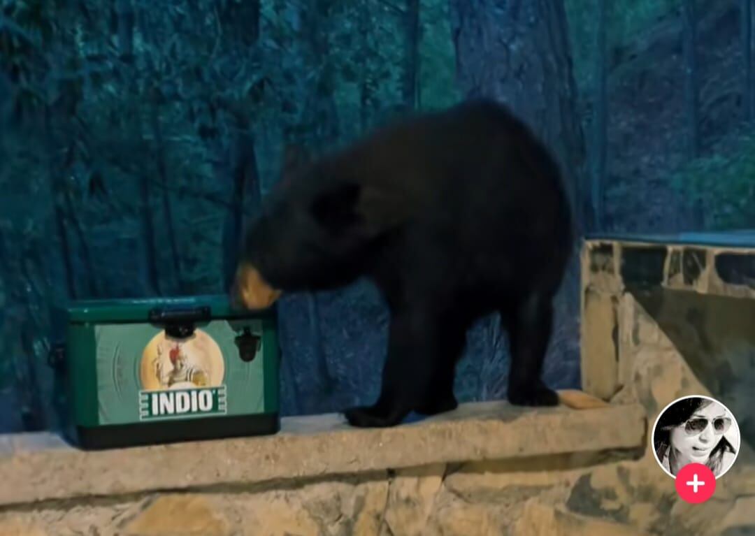 En un video compartido en TikTok, a través de la cuenta erika.urbano, se puede ver cómo el animal, un oso negro, aparece, de pronto, lo que provoca que la familia decidiera resguardase al interior de la cabaña.