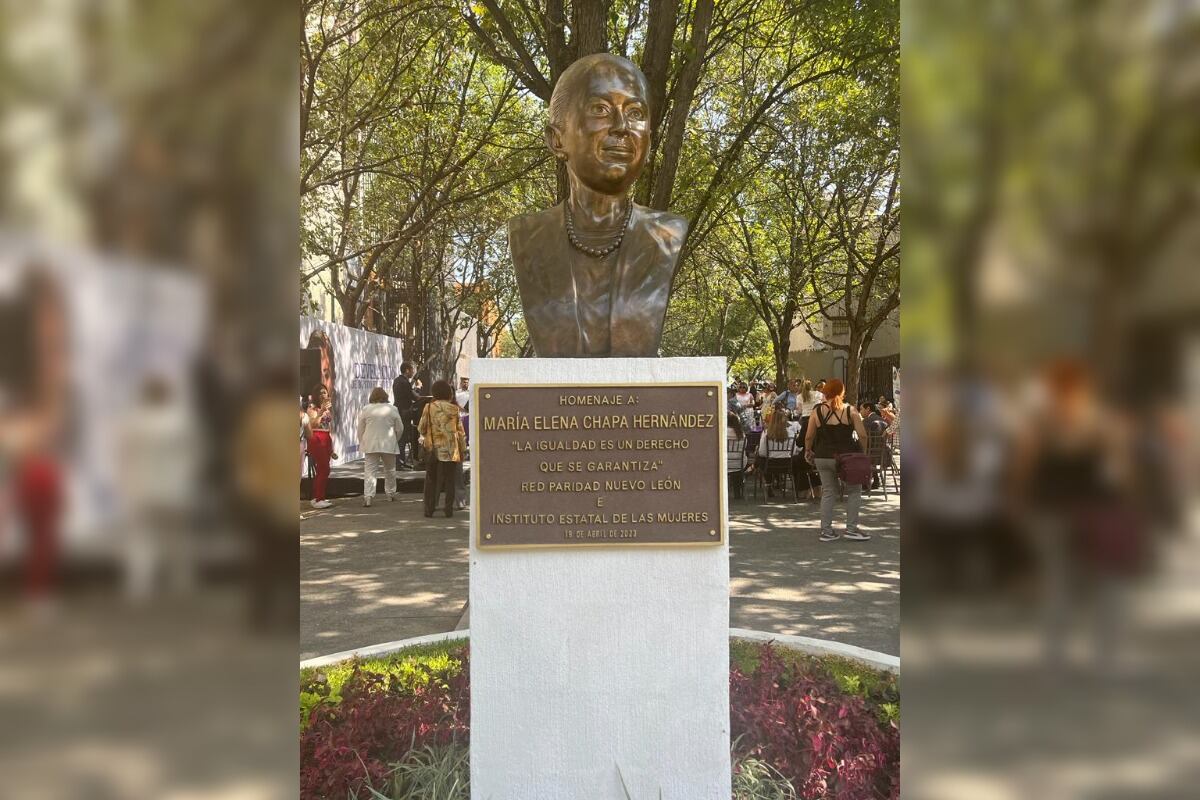 A dos años exactos de haber fallecido María Elena Chapa, fundadora del Instituto Estatal de la Mujeres y de la Red Paridad NL, ambos organismos organizaron la develación de un busto en memoria de la exdiputada, cuya ceremonia se efectuó este miércoles en la Plazoleta Pasillo del Empoderamiento en el Centro de Monterrey.