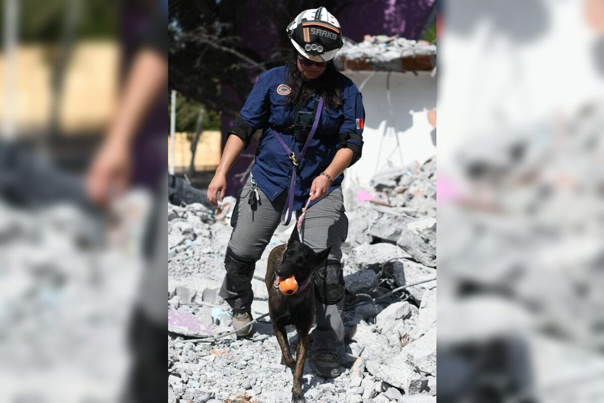 Protección Civil Nuevo León dio a conocer que los binomios caninos pertenecientes a Manadak9 están usando las instalaciones del DIF Capullos, que están en fase de demolición, para tener un escenario lo más parecido a uno real.
