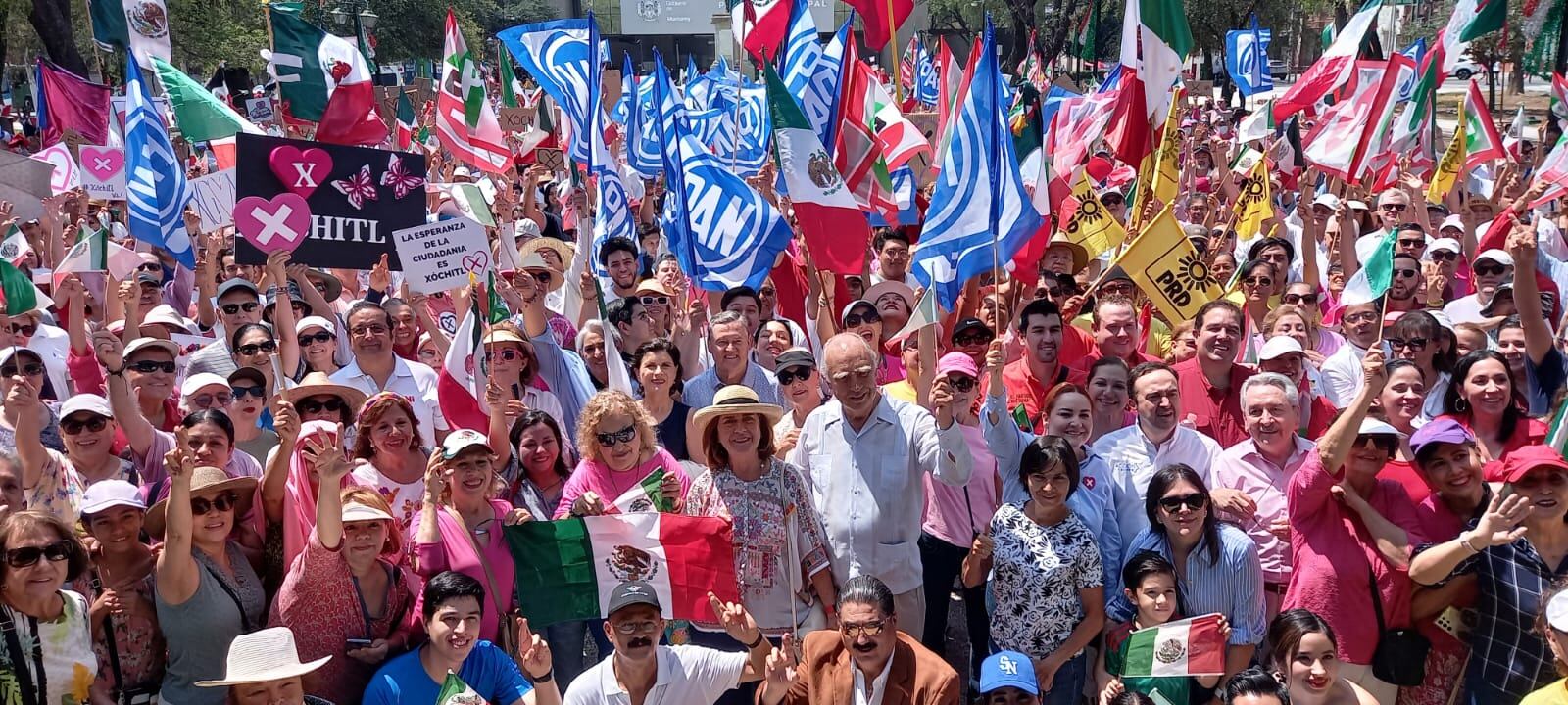 Ante unas 800 personas, integrantes de diferentes colectivos, que siguieron, desde Monterrey, vía satélite la entrega de constancia a Xóchitl Gálvez como abanderada del Frente Amplio, la senadora dijo que ella no tiene filias no fobias y que el único color que reconoce es el de México.