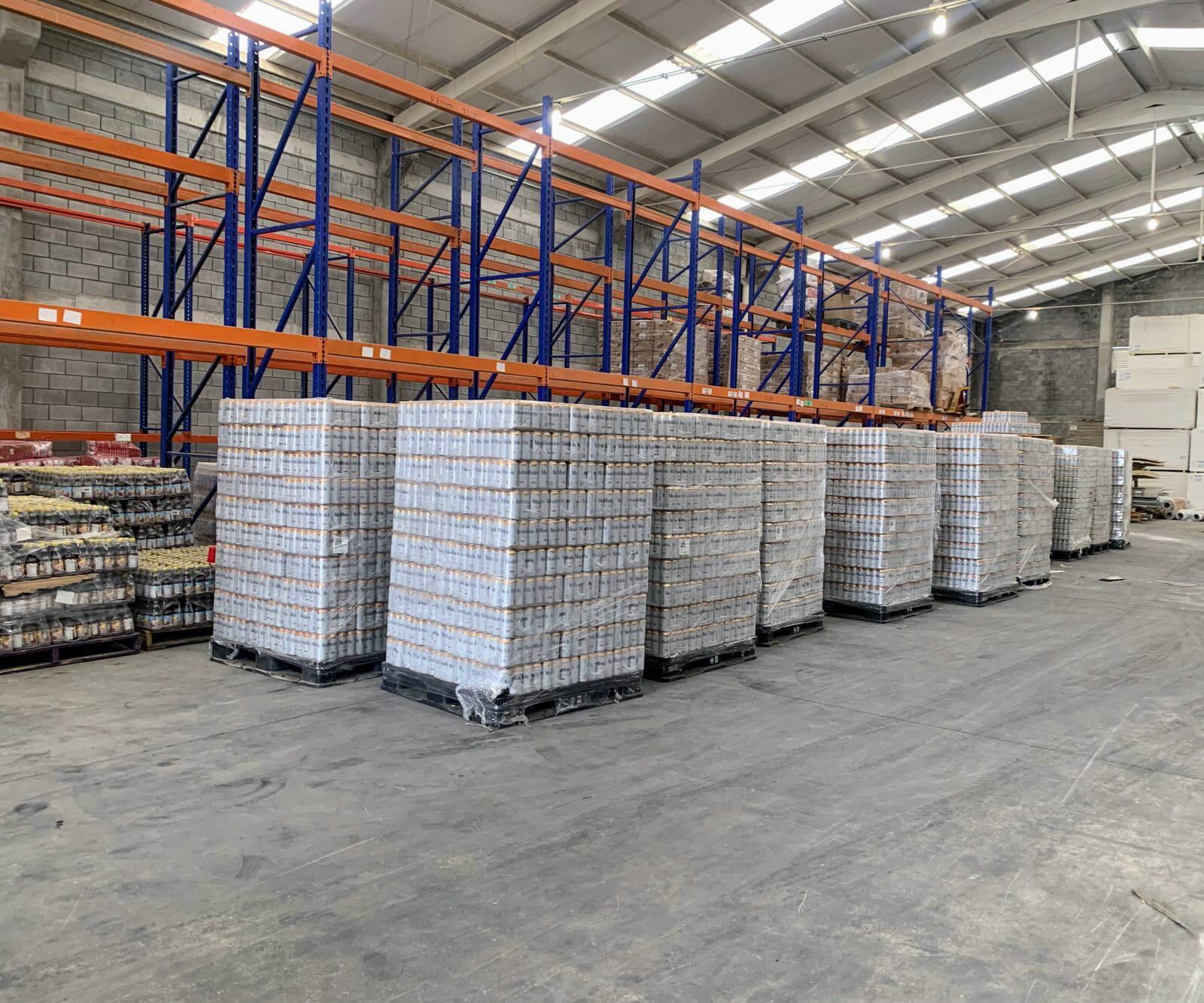 En la bodega fueron encontradas las 21 tarimas plásticas conteniendo producto consistente en 57 mil,839 latas de cerveza.