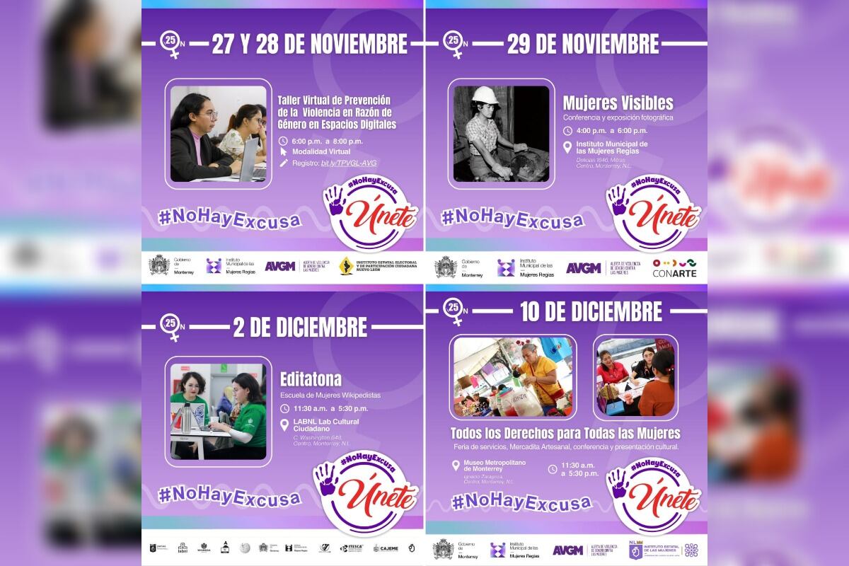 A través de talleres, exposiciones y una feria de servicios, el Instituto de las Mujeres Regias recuerda el 25N durante 16 días de activismo contra la violencia hacia niñas, adolescentes y mujeres.