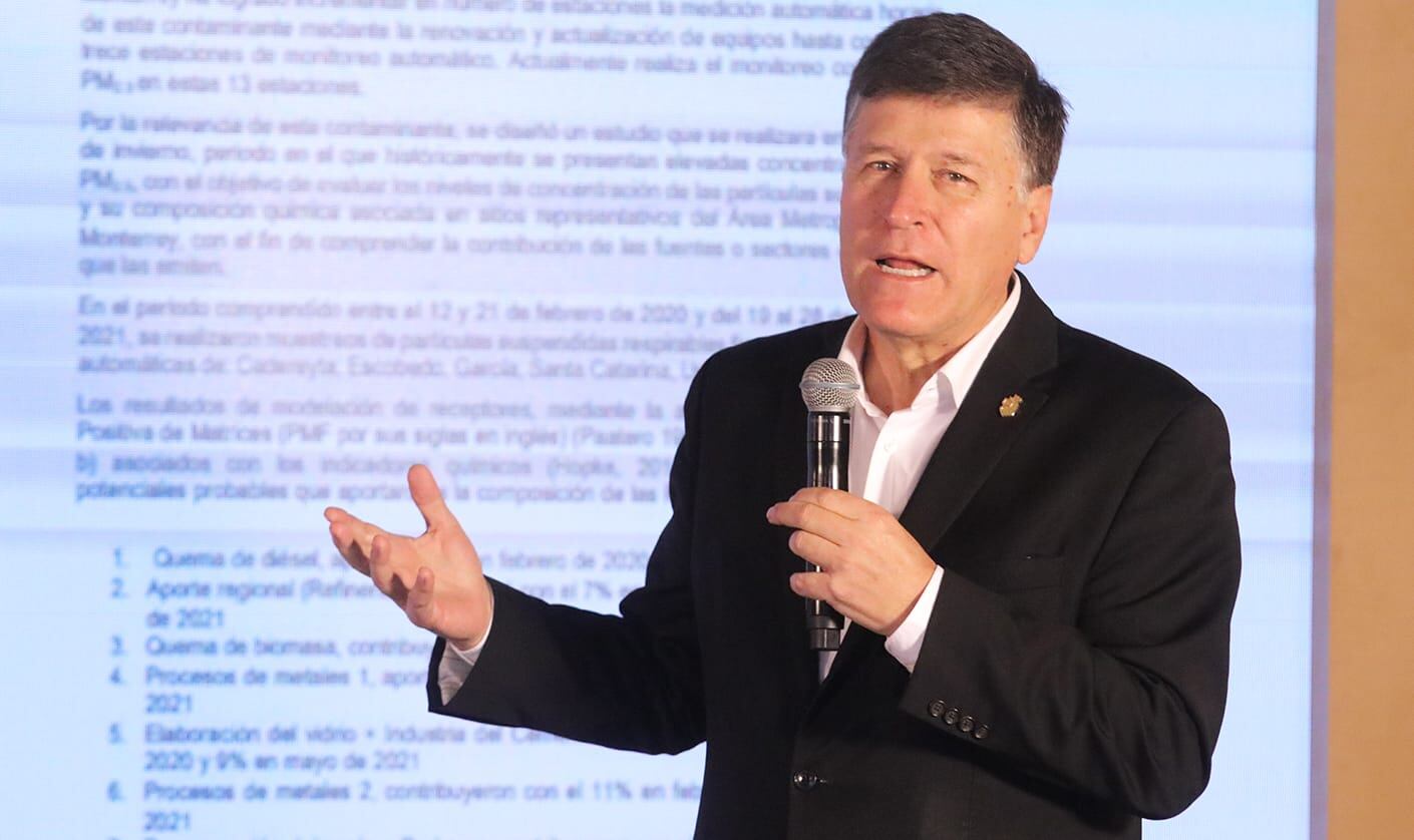 El funcionario aprovechó para aclarar los datos del estudio de Análisis de Informe final del proyecto de Caracterización química de partículas suspendidas PM2.5 en el área metropolitana de Monterrey, en el que se precisa que la refinería contribuyó con un 7% en la emisión de dicho contaminante en febrero de 2020 y 6% en mayo de 2021, es decir, muy poco.