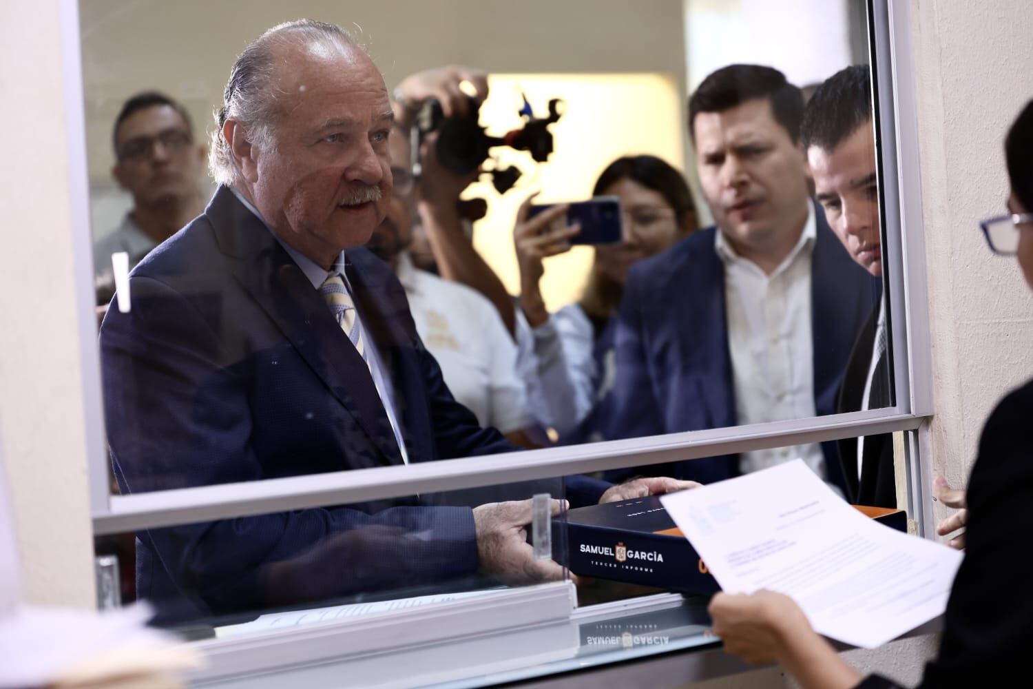 Mientras el gobernador Samuel García colocaba la primera piedra de Volvo en Ciénega de Flores, Javier Navarro, secretario general de Gobierno, entregó en la Oficialía de Partes del Congreso del Estado, el Tercer Informe en donde se detalla la situación que guarda la administración estatal.