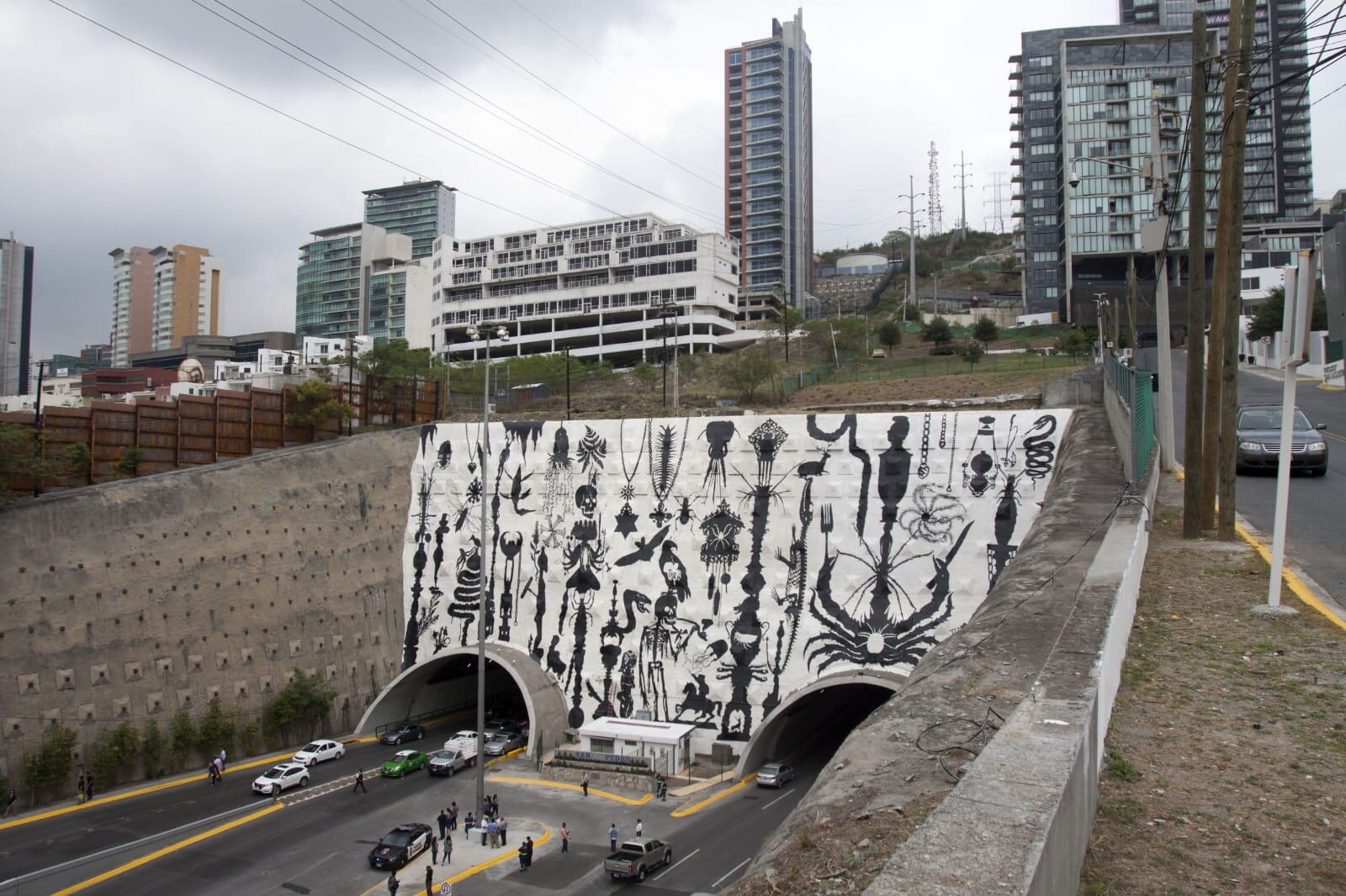 Del lado de San Pedro sobre el túnel hay una amplia infraestructura que incluye plazas y edificios, mientras que del lado de Monterrey se conserva la naturaleza.